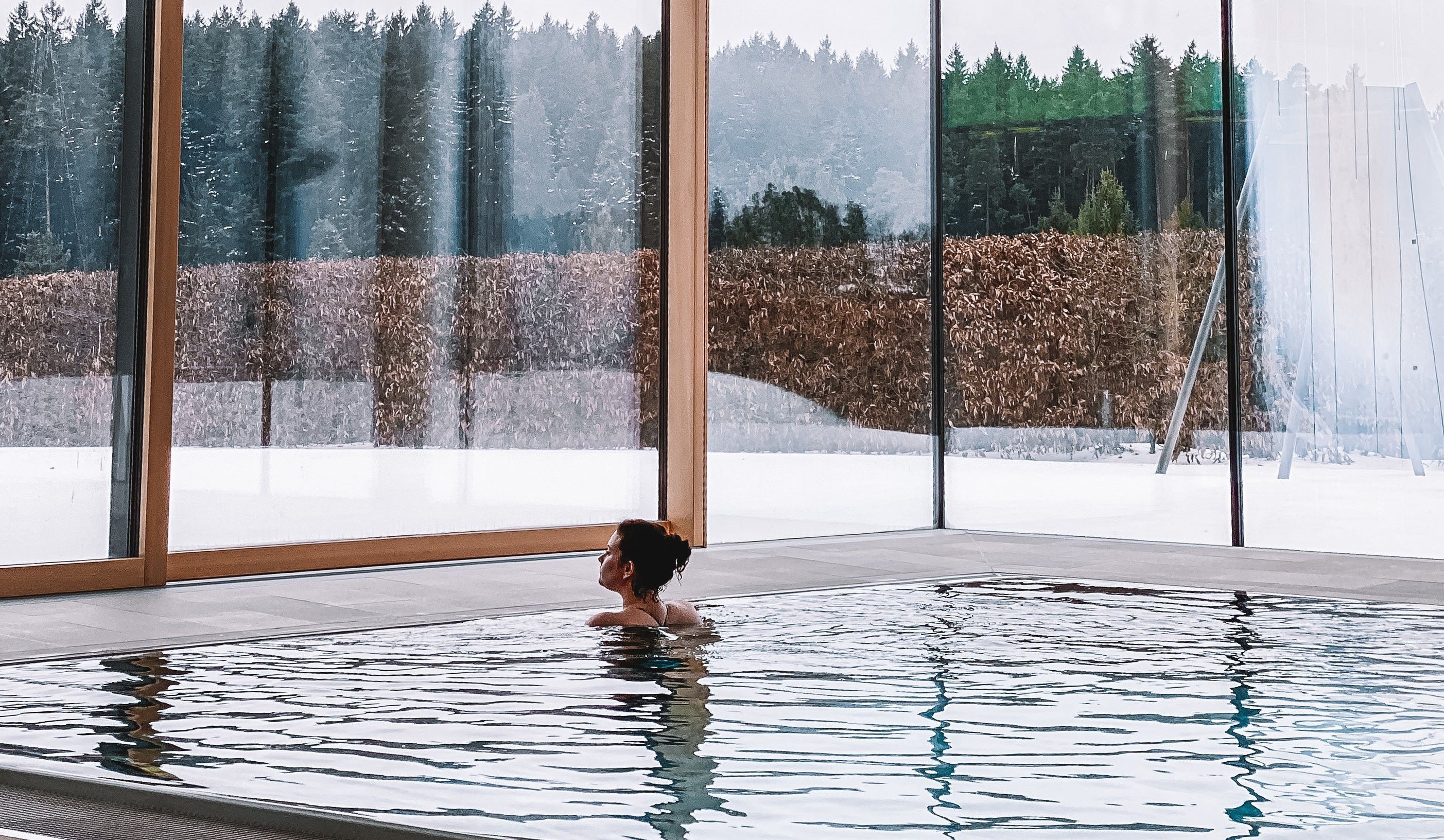 - Wellness & Entspannen im großzügigem „AlmSPA“ mit 4 Saunen, 2 Ruheräumen, Fitnessangebot, Indoor-Pool, Naturschwimm-Biotop und Liegewiese