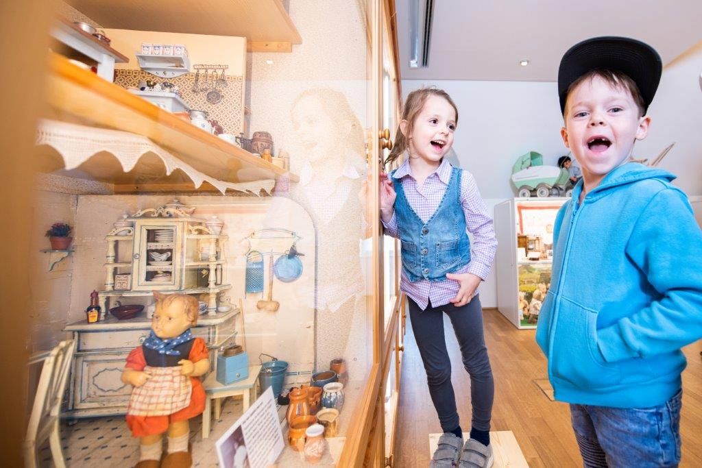 Die Mostviertler Spielzeugwelt im 2. Stock des Museums lässt BesucherInnen in verschiedenen „Welten“ in die Fantasie der Kinder eintauchen. Ein ergreifender Blick in den Alltag der Zwischen- und Nachkriegszeit von Familien aus Waidhofen und Umgebung. Besonderes Highlight: die großteils handgefertigten und liebevoll gestalteten Puppenstuben der Sammlung Kaltenbrunner, die diverse Lebenssituationen zeigen.