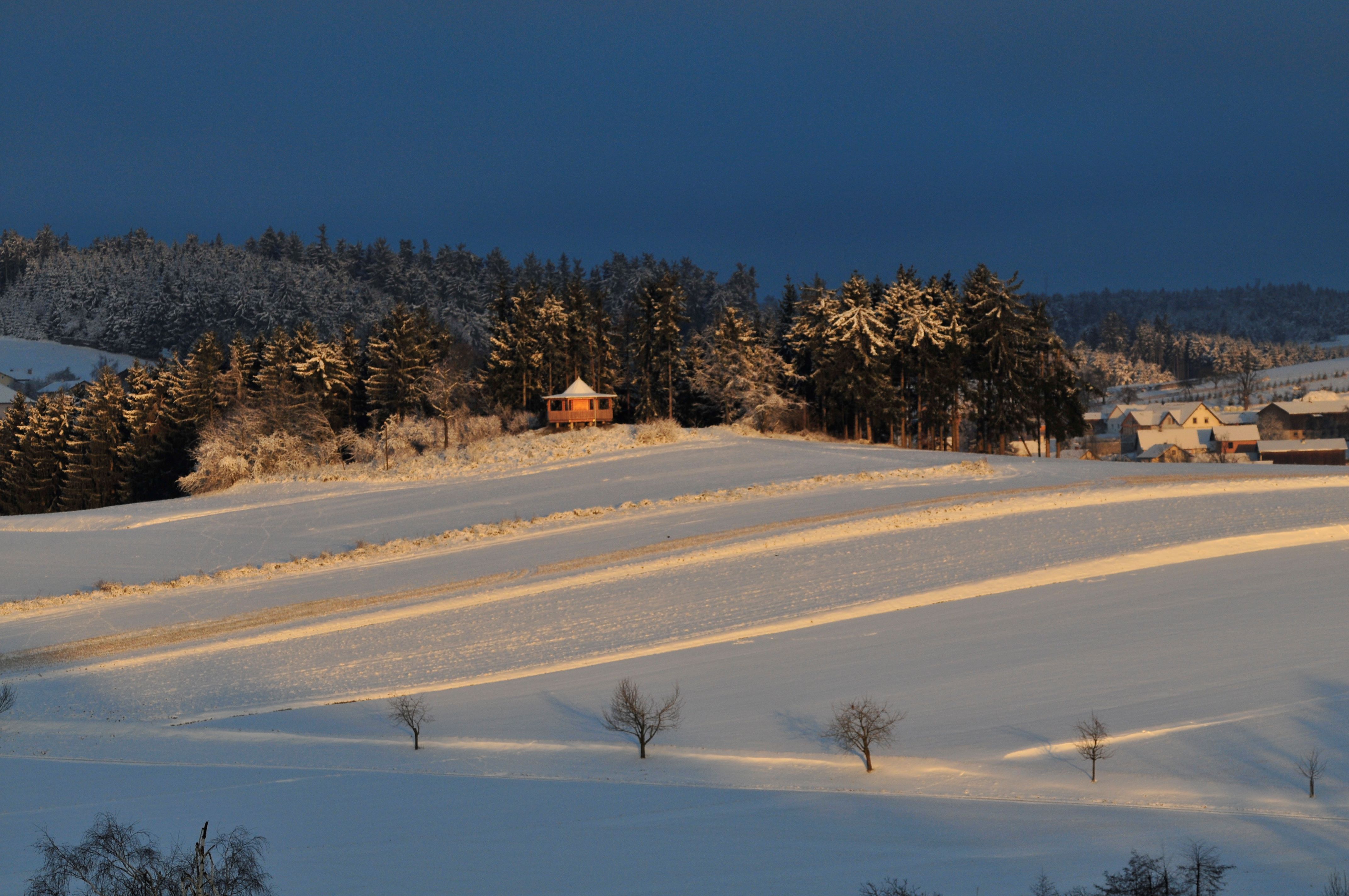 Dem Aussichtspavillon in der Nähe des Albrechtsberger Erholungsteiches werden besonders positive geomantische Eigenschaften zugewiesen.