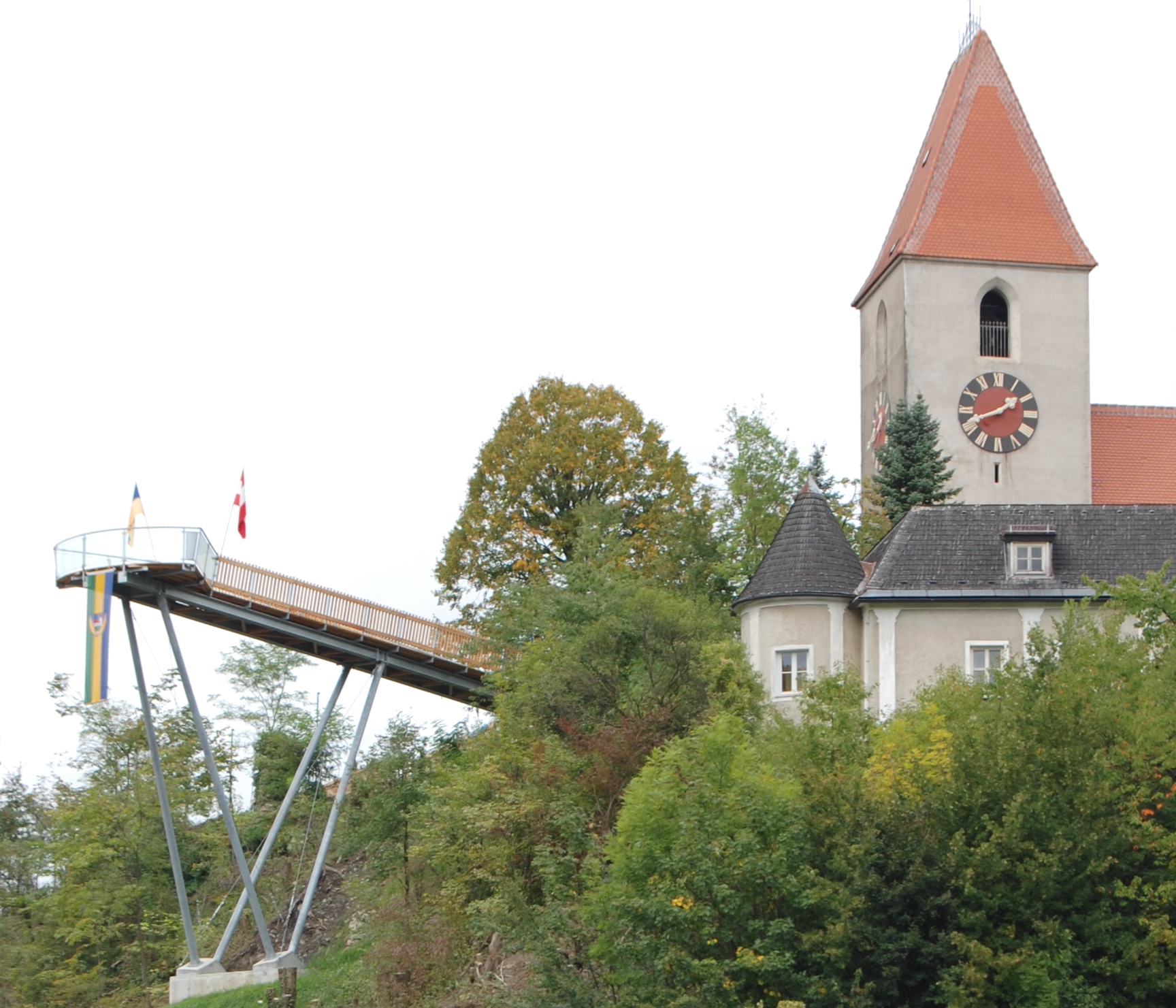Die 2014 errichtete Aussichtsplattform bietet einen wunderschönen Ausblick über den gesamten Ort Kirchberg an der Pielach. Die Plattform ist vom Kirchenvorplatz aus frei zugänglich und stellt den Ausgangs- oder Endpunkt der Kirchberger "Dirndlrunde - Naturrunde" dar.