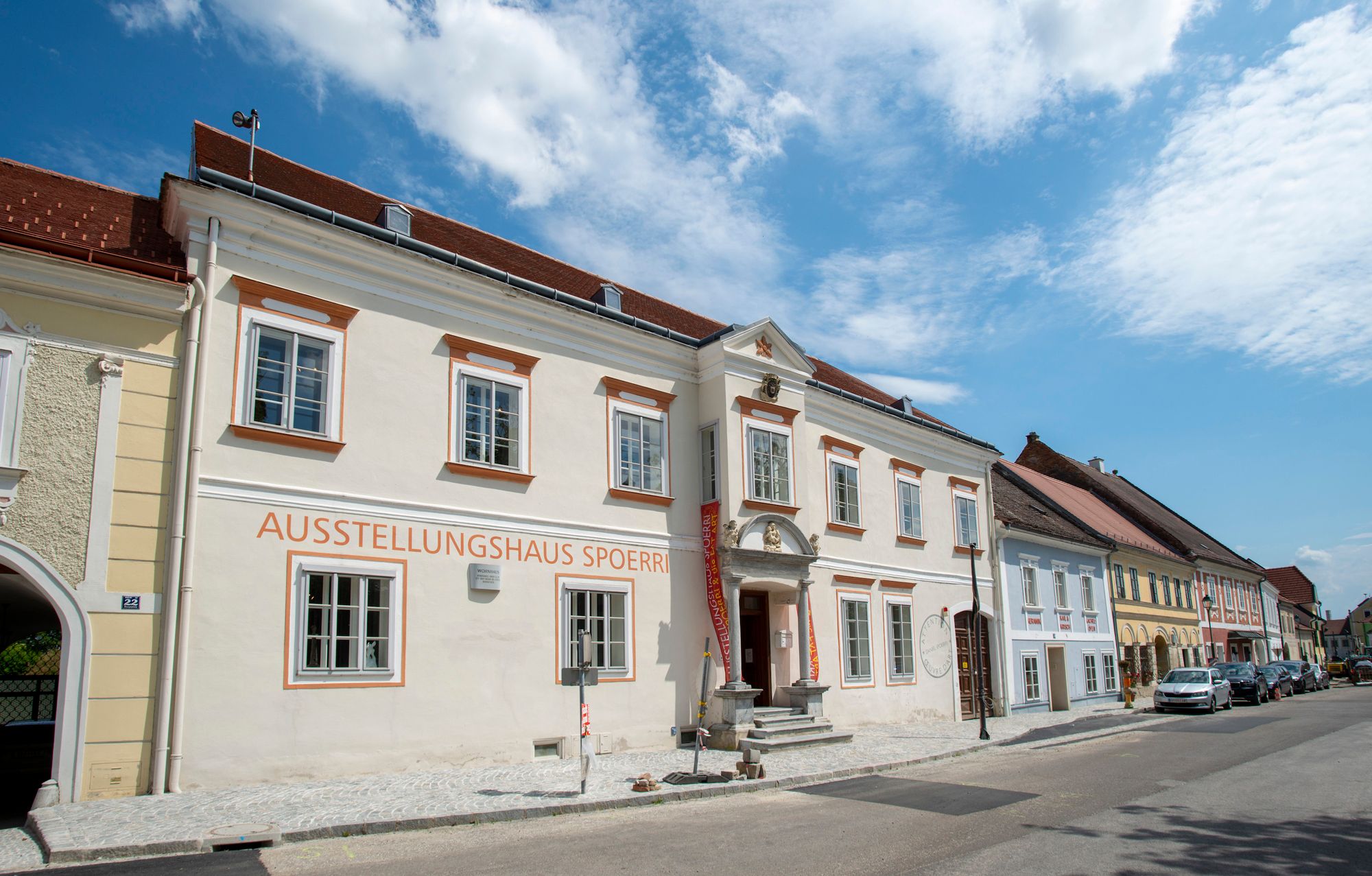 Mitten am Hadersdorfer Hauptplatz, dessen Häuser unter Ensembleschutz stehen, befindet sich das Ausstellungshaus Spoerri  im sogenannten »Hohenfurter-Haus« aus dem späten 16. bzw. frühen 17. Jahrhundert. Namengebend ist das Stift Hohenfurt, in dessen Besitz das Anwesen ursprünglich stand und dem Stift wohl als Verwaltungsgebäude und Meierei diente. Nachdem Daniel Spoerri das Haus im Jahr 2008 erworben hatte, ließ er die Räumlichkeiten für die Zwecke eines Ausstellungshauses adaptieren. Die Anlage beeindruckt auch regelmäßige Besucher*innen immer aufs Neue durch die Ruhe und Behaglichkeit, die dem Haupthaus mit dem großzügigen Innenhof und besonders dem hinter der Scheune gelegenen Garten innewohnen. Gezeigt werden jährlich wechselnde Ausstellungen mit Werken von Daniel Spoerri im Dialog mit Arbeiten von Künstlerfreund:innen.