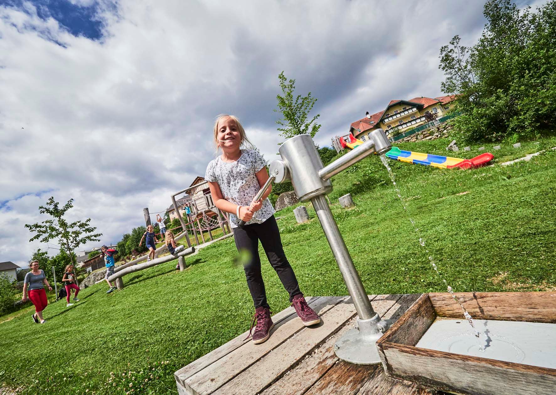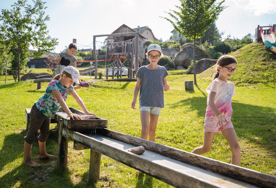 - einem Kinderspielplatz für aktive Kinder mit Spielmöglichkeiten für ganz kleine und für größere Kinder.