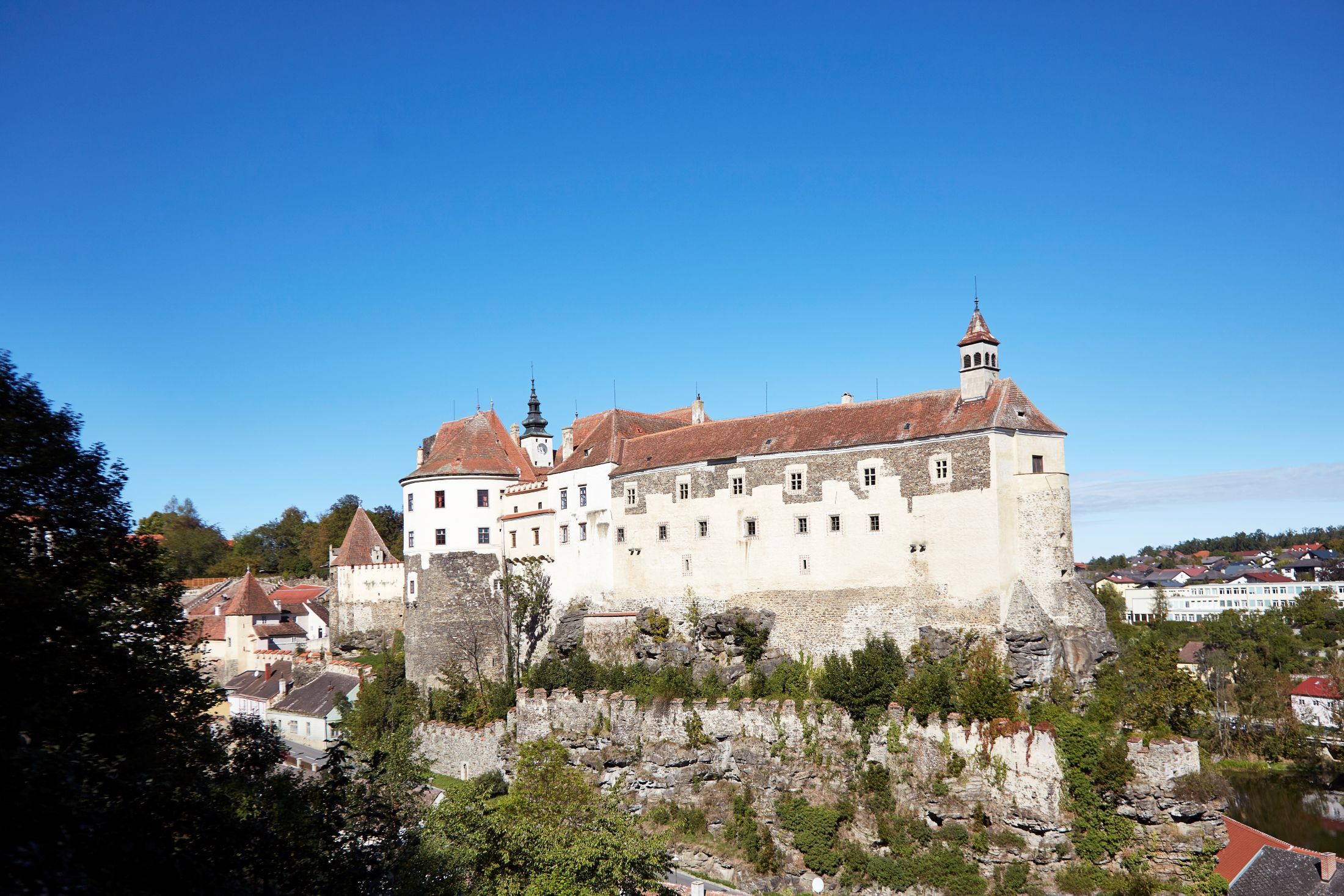 Über dem Zusammenfluss der Mährischen und der Deutschen Thaya thront Raabs, eine der ältesten Steinburgen Österreichs. Am steilen Felsen, die Stadt überragend.