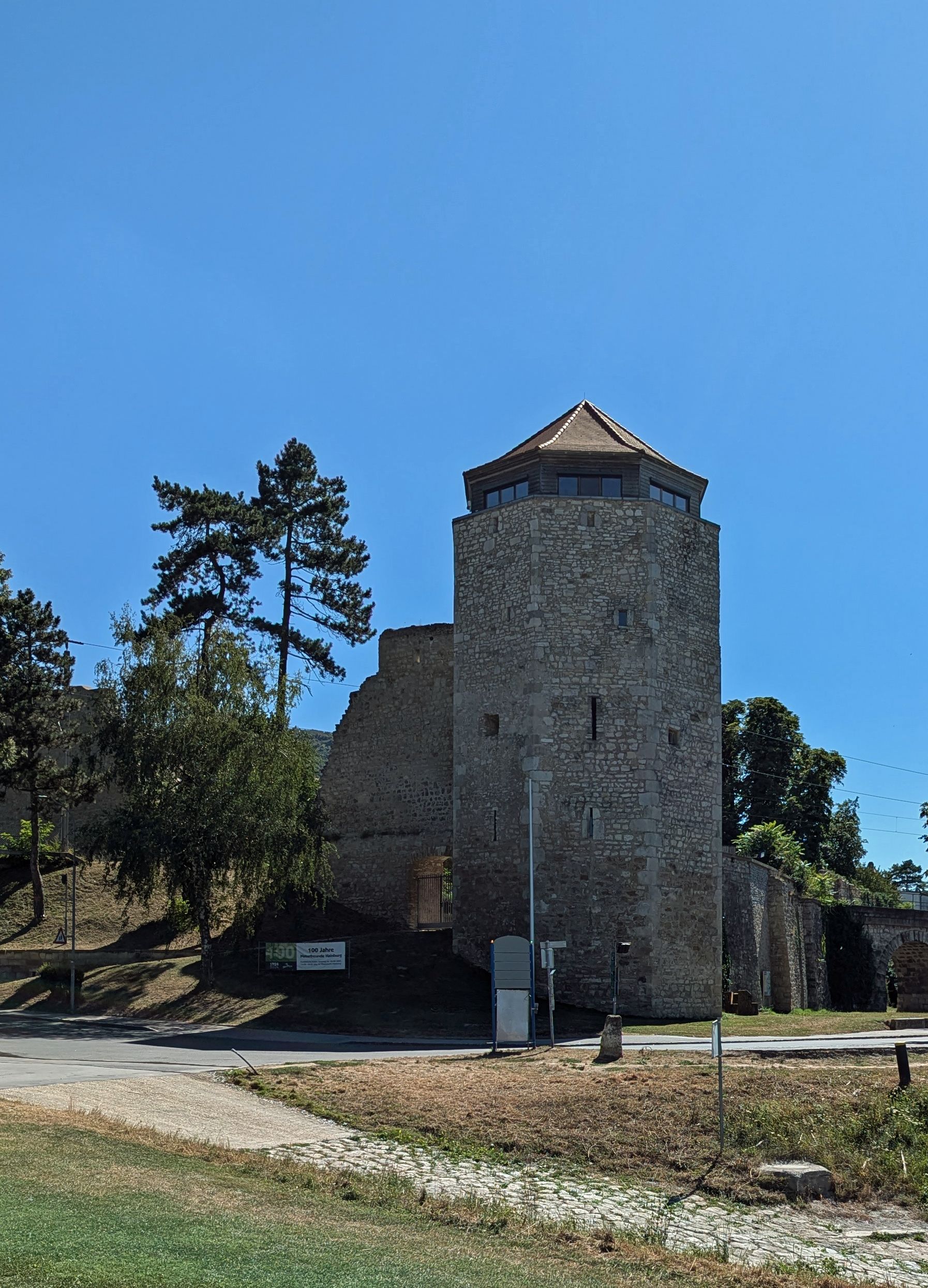 Der Götzenhof im Nordostbereich der Stadt war traditionell im Besitz der sogenannten Herren von Röthelstein, benannt nach der ca. 2 km flussabwärts auf einem steilen Felsmassiv über der Donau gelegenen, ausgedehnten Burg- und Befestigungsanlage. Die Burg Röthelstein wurde übrigens um die Mitte des 12. Jhdts. von, ursprünglich auf der Zentralburg am Schlossberg sitzenden Geschlecht der Sonnberger gegründet, im 13. Jhdt. gehörten sie zu den mächtigsten Stadtministerialen von Hainburg. Der Götzenhof diente ihnen v.a. als Machtbasis in der Stadt, sowie zur Bewirtschaftung ihrer riesigen Besitzungen, bzw. Fischgründe in den gegenüberliegenden Donauauen, und zweifellos auch zum Donauhandel. Der einzige, aber dafür überaus monumentale Überrest des Götzenhofes ist der, in der 1. Hälfte oder kurz nach der Mitte des 13. Jhdts. errichtete, achteckige Götzenturm, er bildet die Nordostecke der Stadtbefestigung. Sein 1. und 2. Geschoss erfüllten ausschließlich militärische Aufgaben (v.a. Deckung des nahe gelegenen Hafenbereiches), das 3. Geschoss diente mit seinen spätromanischen Doppelfenstern zweifellos einer repräsentativen Wohnfunktion. Die anschließende östliche Stadtmauer ist wohl eine der wenigen Stellen der Stadtbefestigung, welche ähnlich dem Wiener- und Ungartor und der Ringmauer der Burg eine außenliegende Wehrgalerie trug, von der aus die Angreifer auf effektive Weise von oben bekämpft werden konnten.