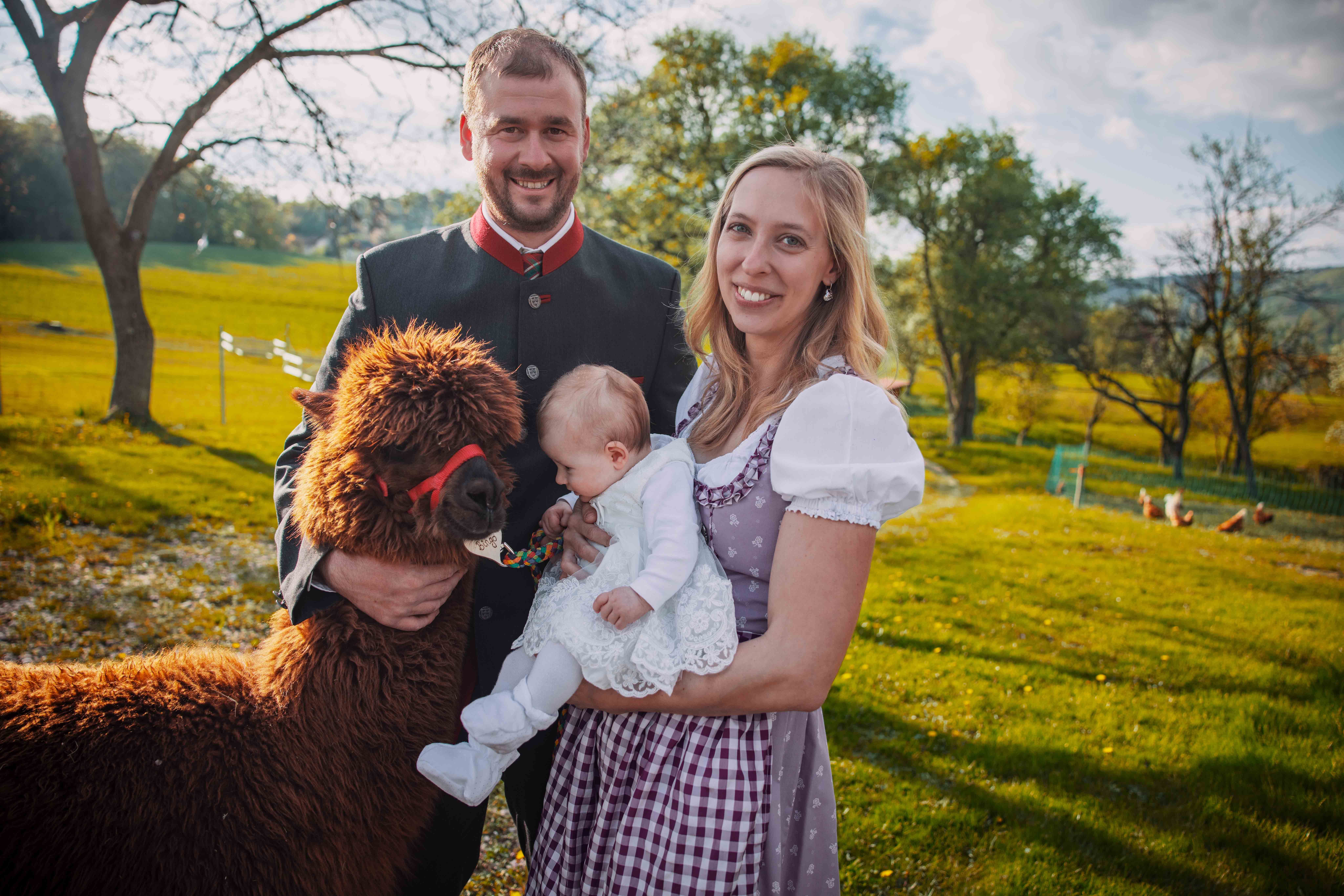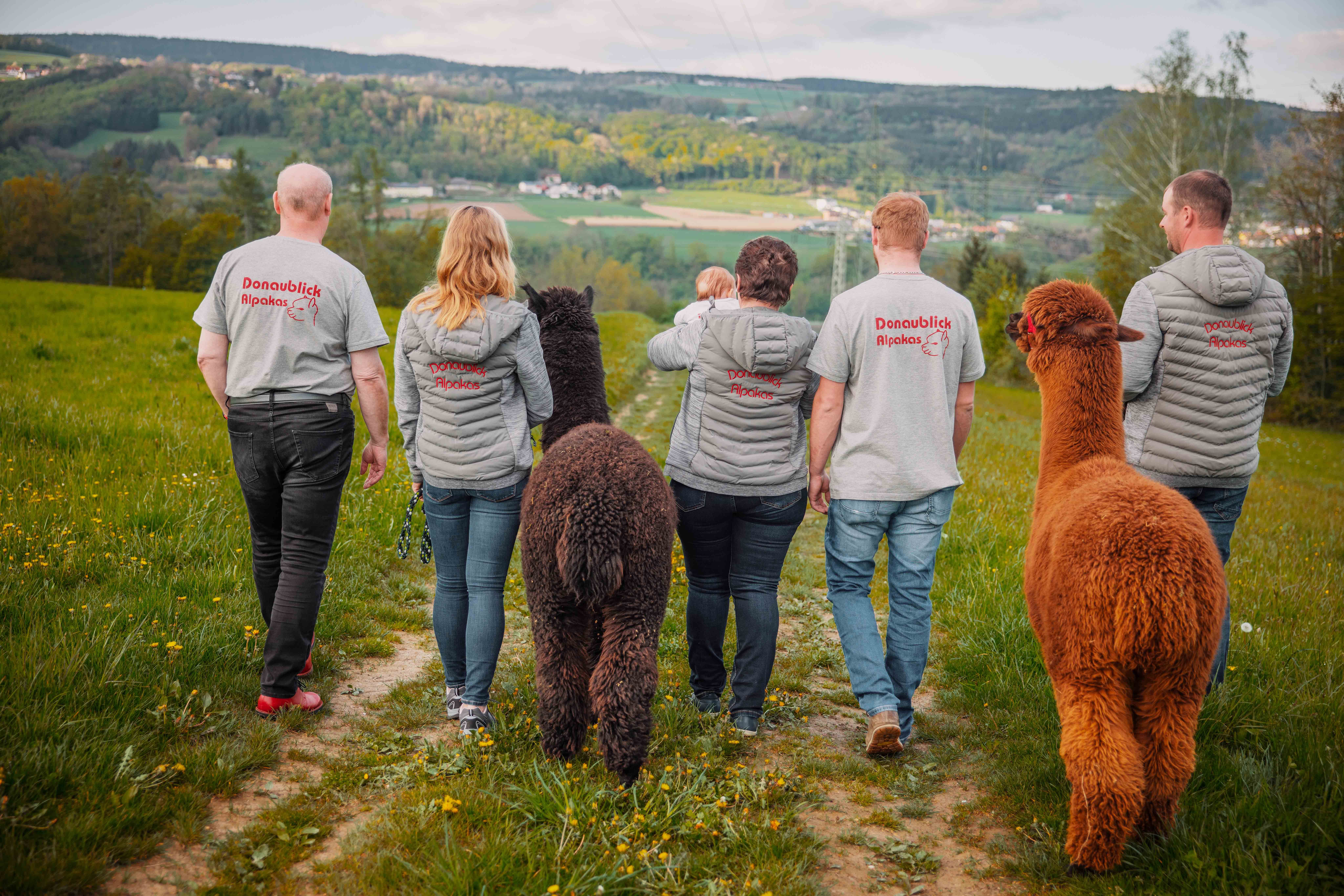 Bei unseren Alpakawanderungen treffen wir uns zum vereinbarten Zeitpunkt bei uns am Hof. Dieser liegt auf der Anhöhe von Ybbs im malerischen Mostviertel. Auf der einen Seite sieht man den imposanten Ötscher, den höchsten Gipfel des Mostviertels und auf der anderen Seite kann man mit den Blicken ins schöne Donautal schweifen.