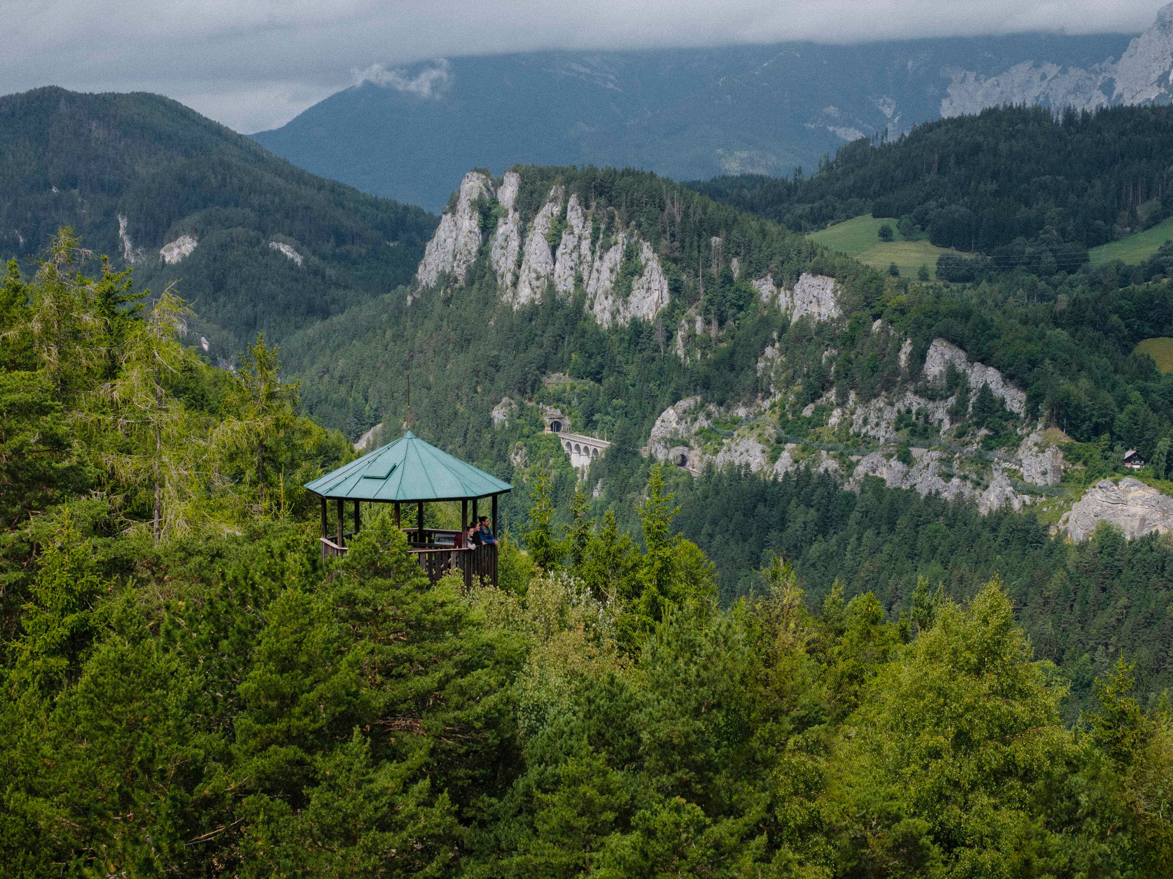 Die Doppelreiter Ausichtswarte liegt in 919 Meter Höhe auf dem Wolfsbergkogel am Bahnwanderweg, der entlang der Semmeringbahn führt in der Gemeinde Semmering. Nur wenige Gehminuten vom Blickplatz "20 Schilling" entfernt, wird hier wieder ein atemberaubender Ausblick auf das UNESCO-Weltkulturerbes Semmeringeisenbahn und die Umgebung geboten. Gleich unterhalb des Wolfsbergkogels mit der Aussichtswarte befindet sich auch eine Bahnhaltestelle.