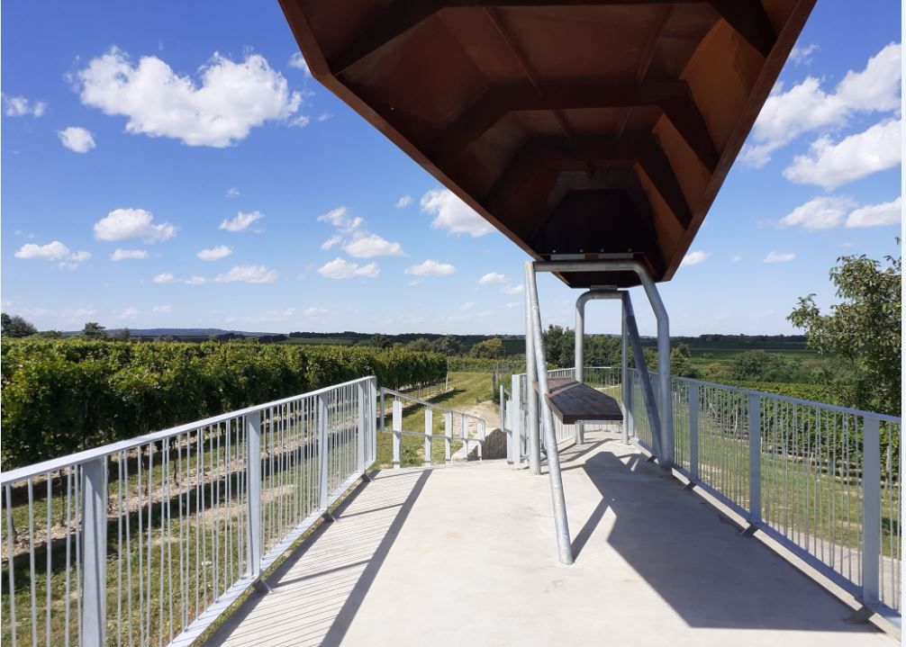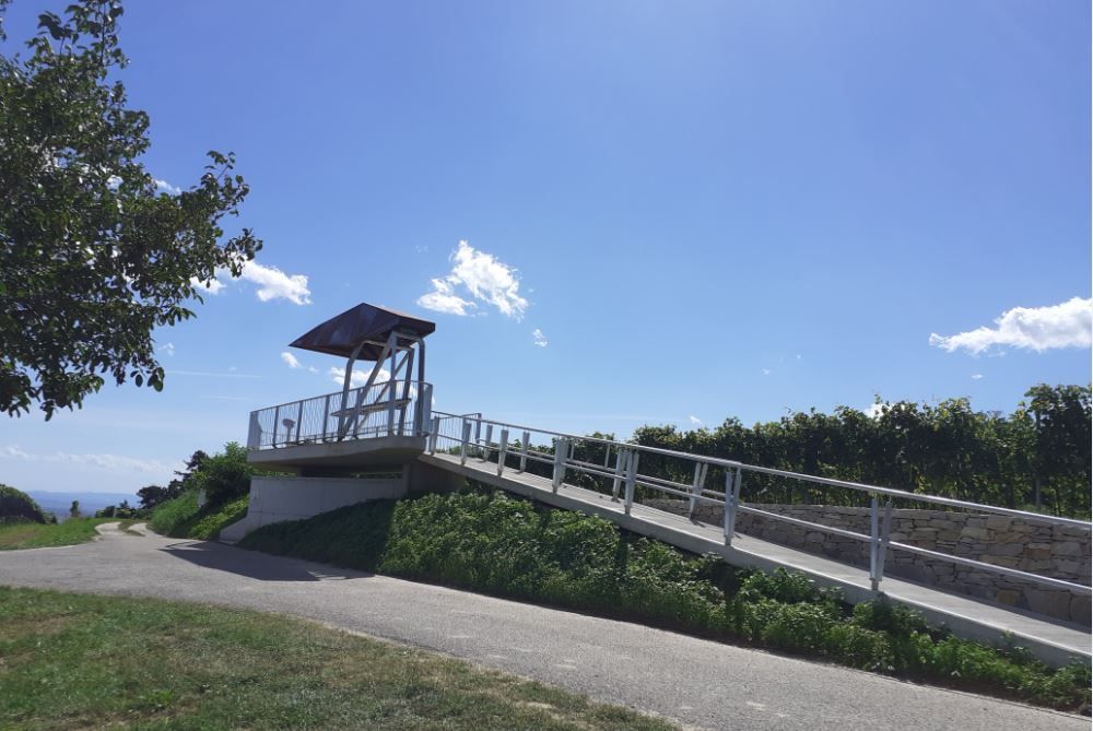 Besucher:innen erreichen den Aussichtspunkt über gut markierte Wander- und Radwege wie den "Tut‑Gut‑Weg". Die Plattform bietet einen beeindruckenden Rundblick über die Weingärten, das Tullnerfeld und bis zur Donau. Dank Sitzmöglichkeit und Theke dient sie ideal als Picknick- oder Verkostungsplatz – ein beliebter Treffpunkt und echtes Highlight für Natur- und Weinliebhaber:innen.