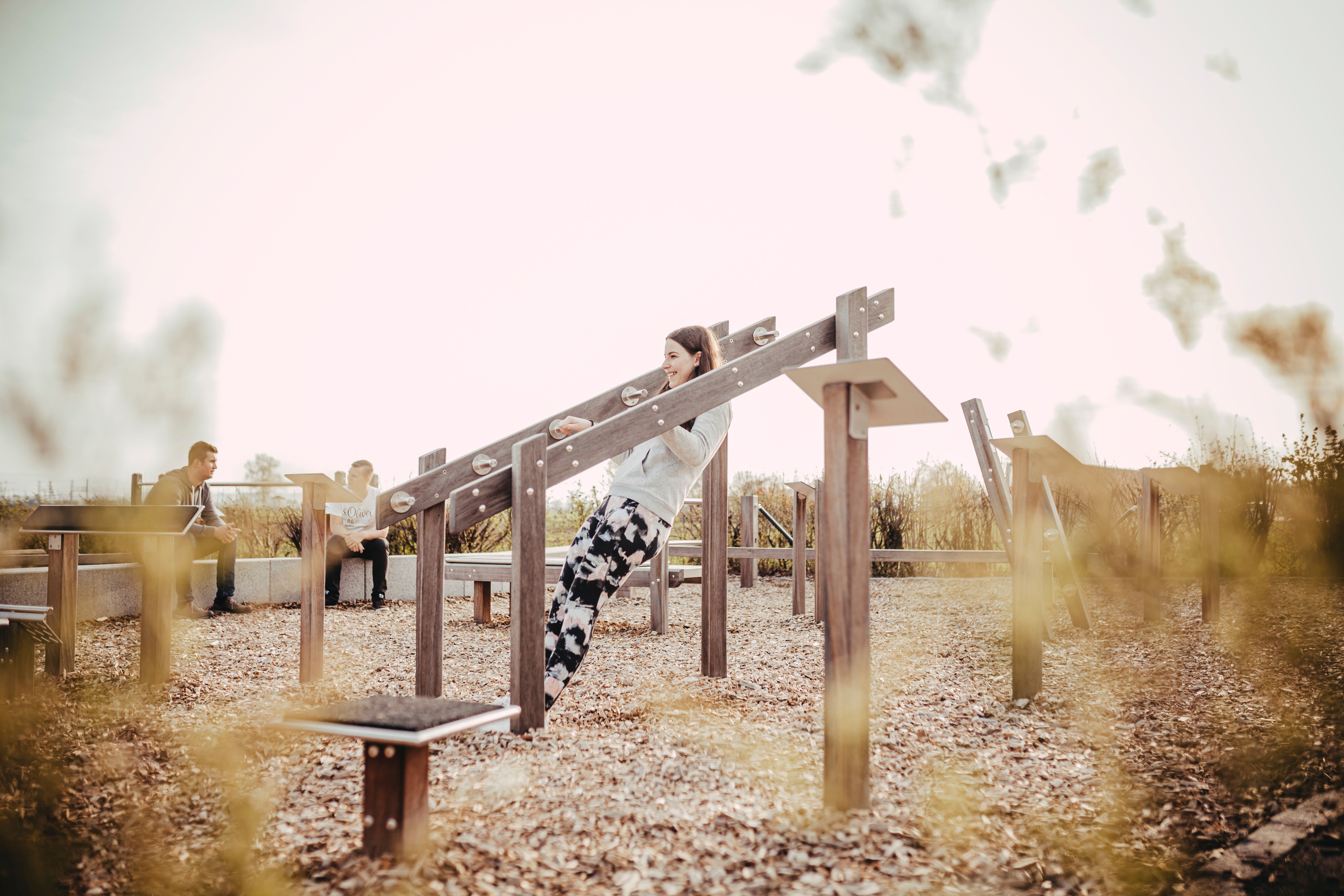 Der Fitnesspark verfügt unter anderem über Wackelbretter, Balancierbalken, Slackbalken, Sprungtische, eine Kletterstation, eine Slackline und vieles mehr. Um das Training zu erleichtern, wurden Übungsanleitungen an den Geräten angebracht.