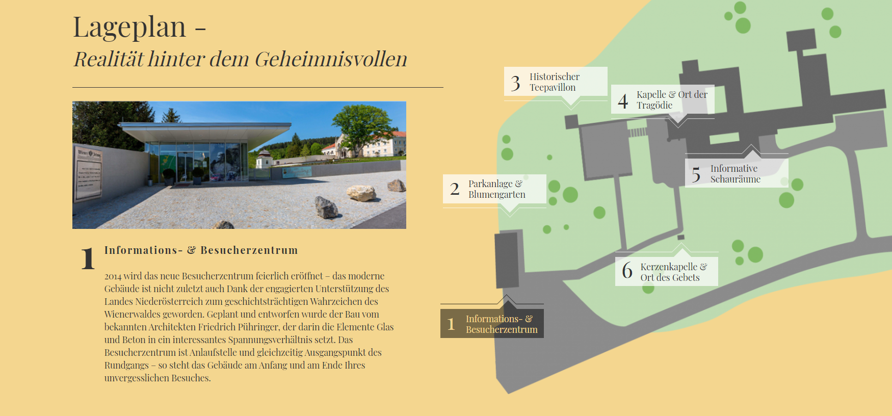 Besonders sehenswert ist auch die großzügig angelegte Parkanlage des Karmel Mayerling, welche die den beeindruckenden Schauplatz umgibt. Ein ganz besonderer Ausflug erwartet Sie!