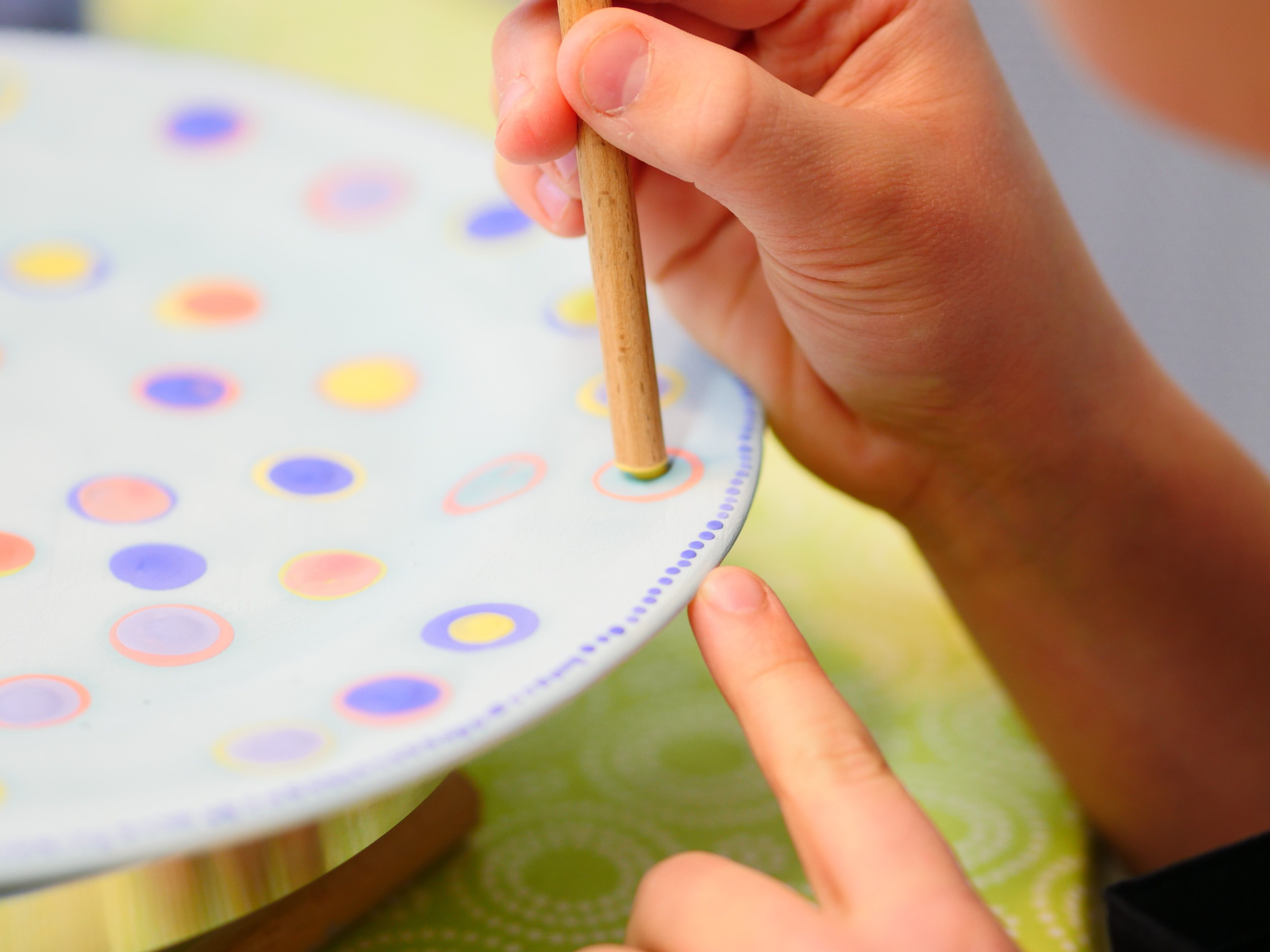 Den Besuch im gemütlichen Keramik-Malstudio schätzen auch immer mehr Erwachsene, die mit ihren Kindern vorbeischauen und selbst zum Pinsel greifen. Vorwissen ist nicht nötig und wenn man einmal ansteht, helfen Alice und ihr Team gerne weiter. So lernt man zum Beispiel auch, wie man mit Ritz-, Streusel-, oder Blubber-Techniken tolle Effekte schafft. Übrigens: Ins „Wunderland“ kann man ganz ohne Voranmeldung kommen. Und wer möchte, feiert in der Brodtischgasse auch gleich seinen Geburtstag.