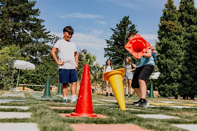 Der einzigartige Abenteuergarten mit seiner Familien- und Adrenalin-Rutsche, dem Floß-Teich und dem plätschernden Bachlauf, dem Geschicklichkeitsparcours und vielem Mehr begeistert große und kleine Abenteurer. Im angrenzenden tierischen Bauerngarten zeigen Zwergziege Paulchen und seine Freunde im täglichen Programm, was sie können. Alpakas, Ponys, Häschen und die 4 Waldviertler-Kängurus machen das tierische Kollegium komplett.