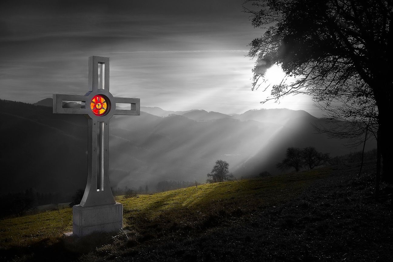 Das Kreuz auf Anhöhe strahlt seit Bestehen (wurde 2011 von der Heimatforschung Hofstetten-Grünau aufgestellt) seinen Glanz weit ins Tal.