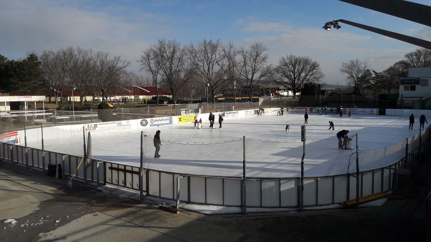 Ultimatives Wintervergnügen in freier Natur bei einer Eisfläche von 1.680 m². Der Stockerauer Eislaufplatz beim Erholungszentrum erfreut sich großer Beliebtheit.