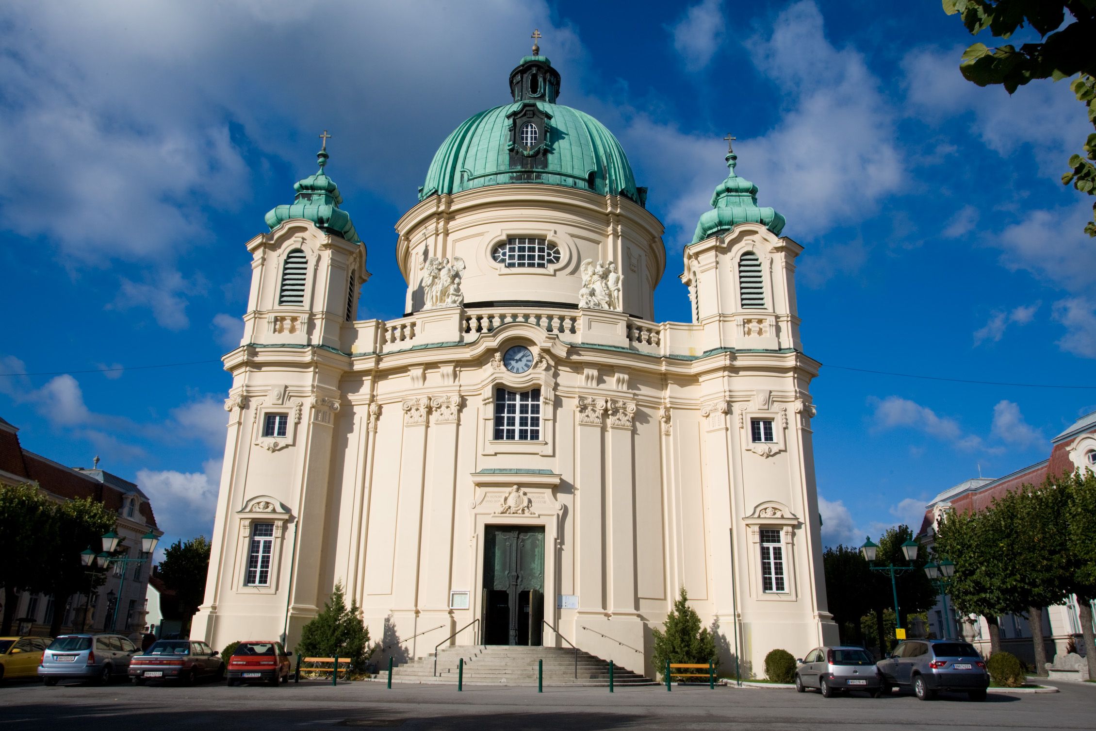 Das Ehepaar Arthur und Margret Krupp widmete die Kirche den Einwohnern der Stadt. Das Ensemble mit der neubarocken Margaretenkirche und den beiden Schulen ist ein weithin sichtbares Wahrzeichen Berndorfs. Den Innenraum beherrscht der in Bronze gegossene, zwanzig Tonnen schwere Hochaltar. Im rechten Turm der Kirche ist ein Glockenspiel untergebracht, welches dreimal täglich erklingt.