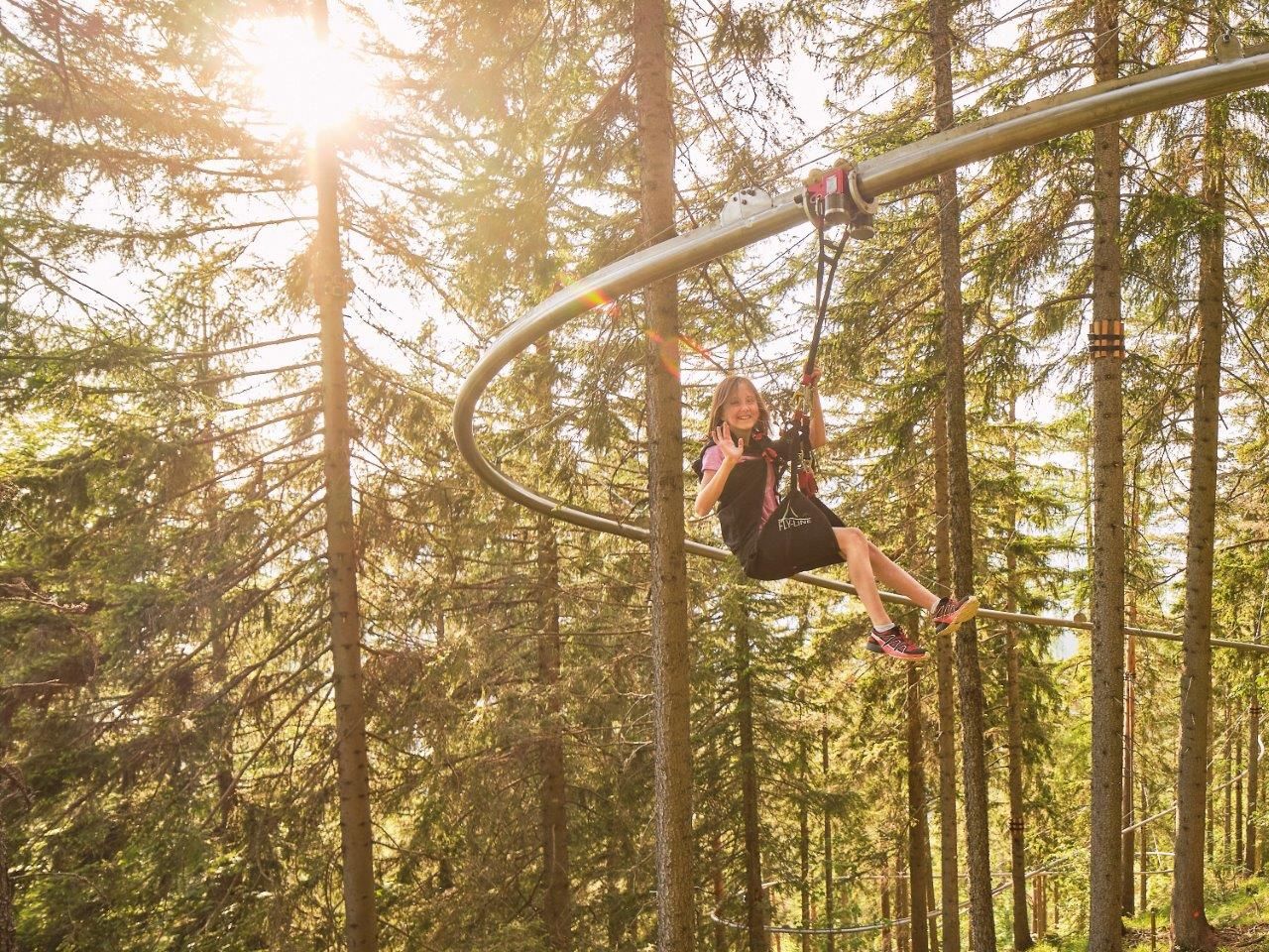Mit der neuen „Wald8erbahn“ schwebt man – alleine oder im Tandem mit Kind – zwischen den Baumwipfeln. Am Ende des Flugs geht’s zu Fuß auf dem Waldabenteuer weg zurück. An sieben Stationen wird hier „Das Geheimnis des weißen Turms“ gelüftet.