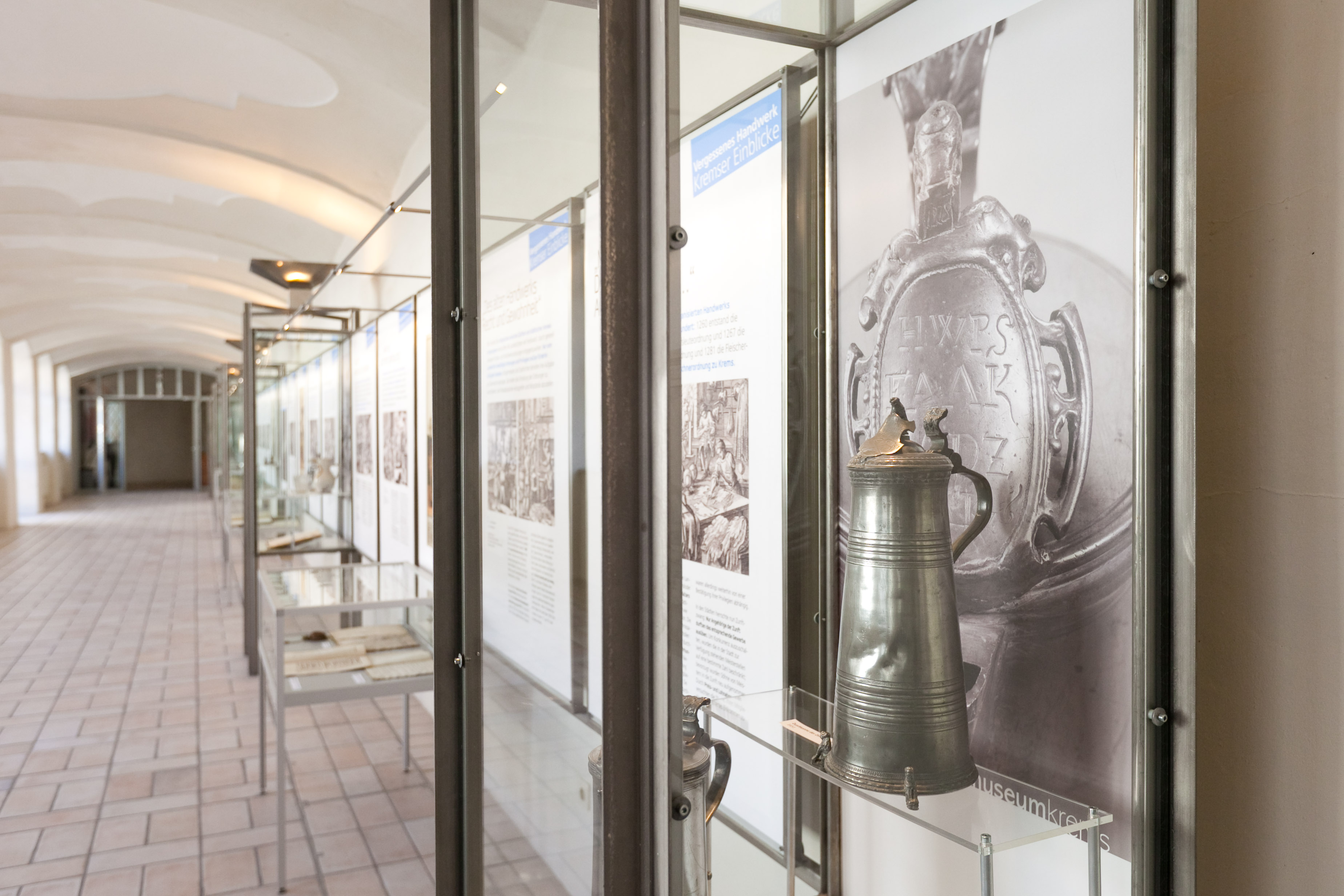 In einer permanenten Schau werden Geschichte und Kultur der Donaustadt gezeigt – bestehend aus umfangreichen Stadt- und Privat-Sammlungen. Wechselnde Sonderausstellungen laden dabei zu immer neuen Entdeckungsreisen ein. Mit ausgewählten Exponaten und archäologischen Funden wird das „Leben mit dem Strom“ präsentiert. Die wirtschaftliche, künstlerische und soziale Bedeutung der Stadt Krems seit dem Mittelalter wird lebendig nachgezeichnet. Besondere Bedeutung kommt dabei dem Kremser Barockmaler Martin Johann Schmidt zu. Auch der „Kremser Pfennig“ – die älteste Münze Österreichs – kann live bestaunt werden.