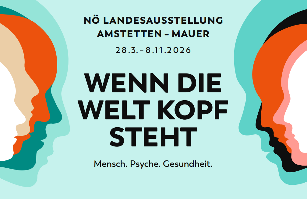 Die NÖ Landesausstellung 2026 findet in Amstetten-Mauer statt – in der Region Moststraße im Herzen des Mostviertels. Unter dem Titel „WENN DIE WELT KOPF STEHT – Mensch. Psyche. Gesundheit.“ werden Sie dazu eingeladen, sich dem Thema „seelische Gesundheit“ aus unter schiedlichen Perspektiven zu nähern.