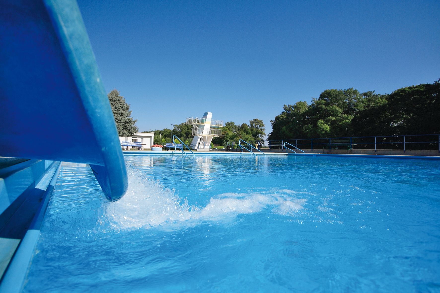 Das Parkbad liegt inmitten des idyllischen Schlossparks. Die riesige Liegewiese bietet sowohl dem Sonnenhungrigen als auch dem Schattensuchenden ausreichend Platz. 50-m-Sportbecken, 5-m-Sprungturm, 22-m-Wasserrutsche, Kinder erlebnisbecken und Beachvolleyballplatz machen den Besuch für alle Altersgruppen zu einem Erlebnis. Ein abwechslungsreiches Buffet rundet das Freizeitvergnügen ab.