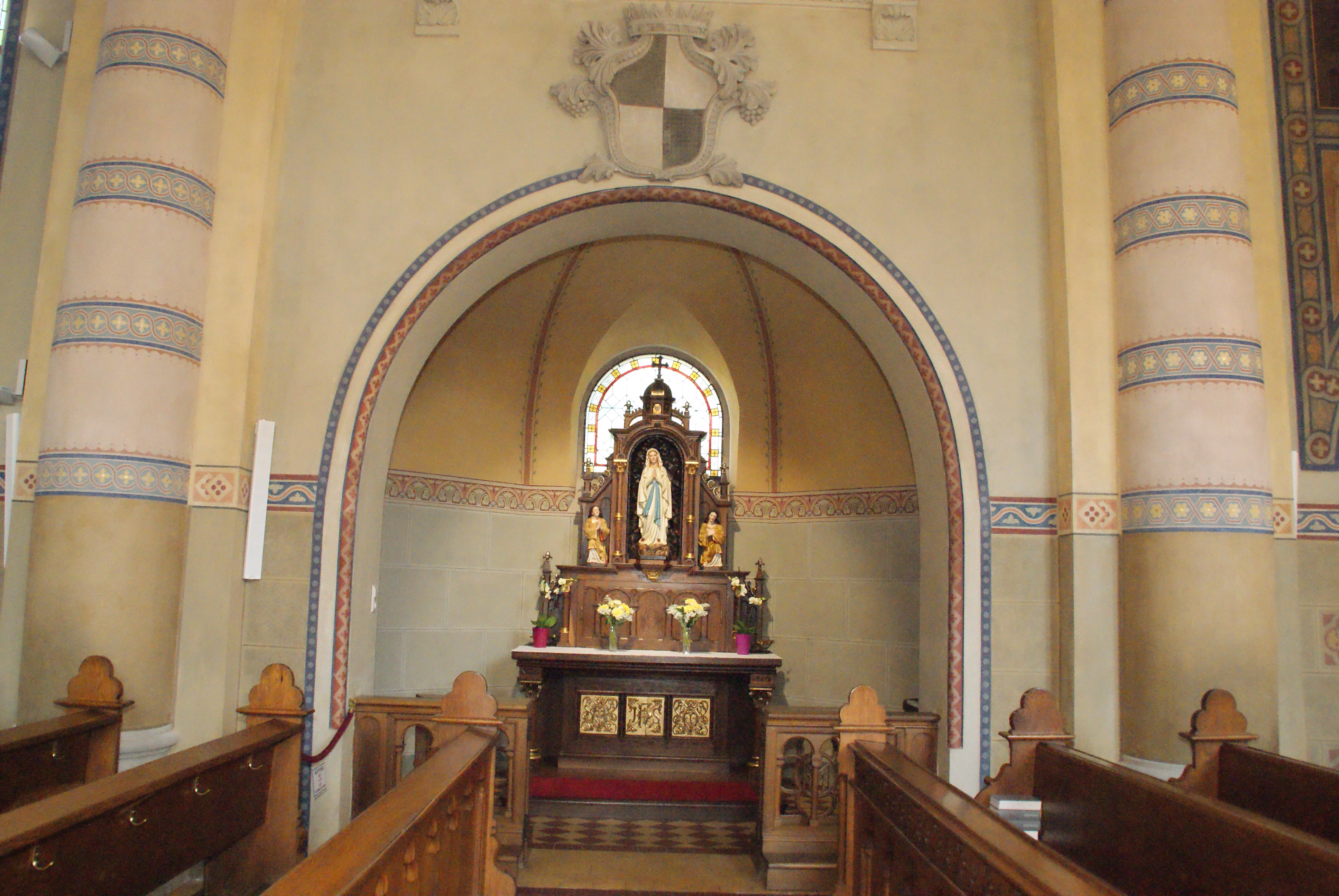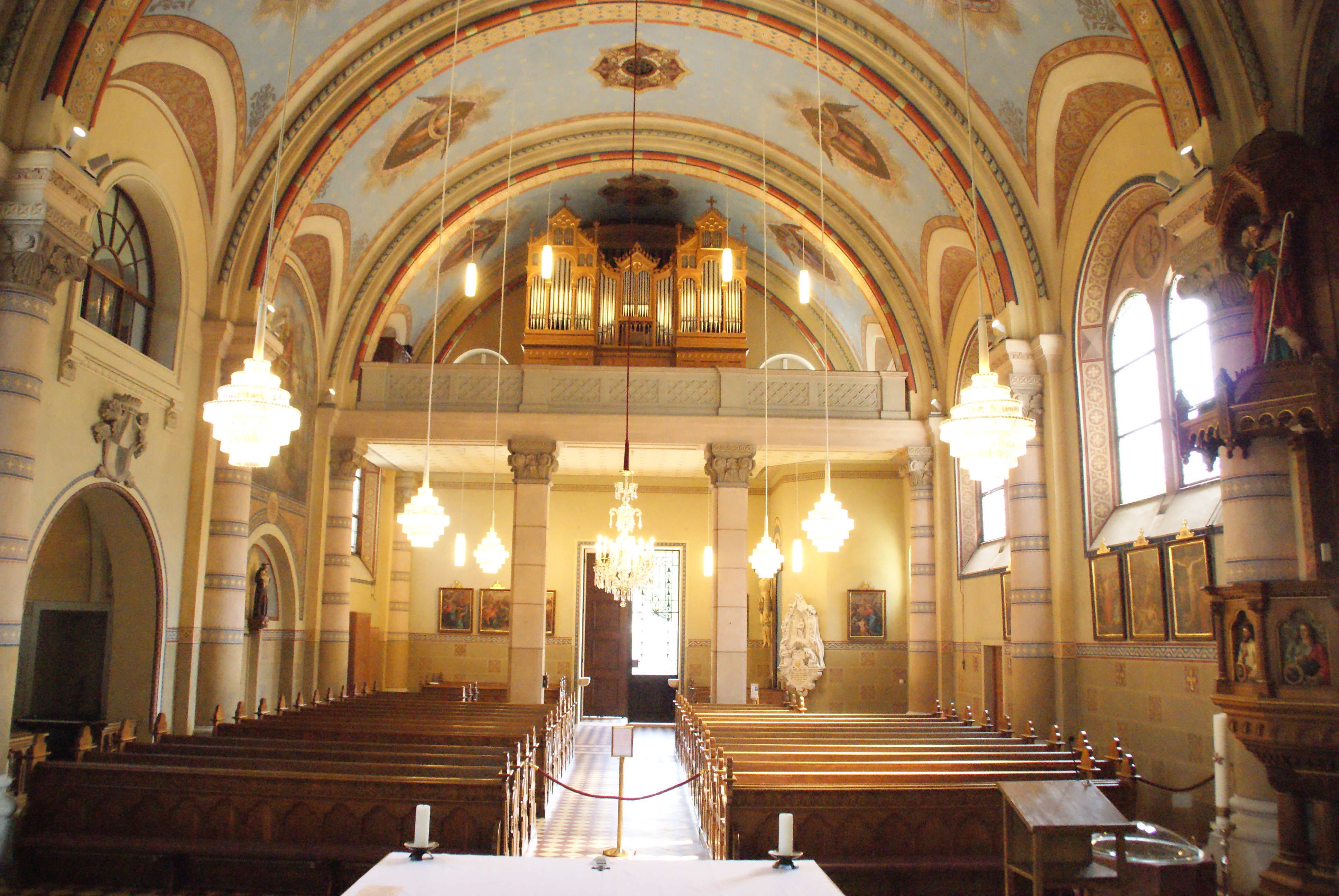 Die aktuelle Kirche im neoromanischen Stil mit byzantinischen und maurischen Einsprengseln, wurde 1907 eingeweiht und ersetzte die alte Kirche, die durch Bodensetzungen baufällig geworden war. Besonders beeindruckend an der Kirche sind die kunstvollen Malereien im Nazarenerstil. Zu der Kirchenausstattung gehört auch ein Lourdes-Altar in einer Seitennische, der als Wendealtar gefertigt ist und zu Ostern als Heiliges Grab fungiert.