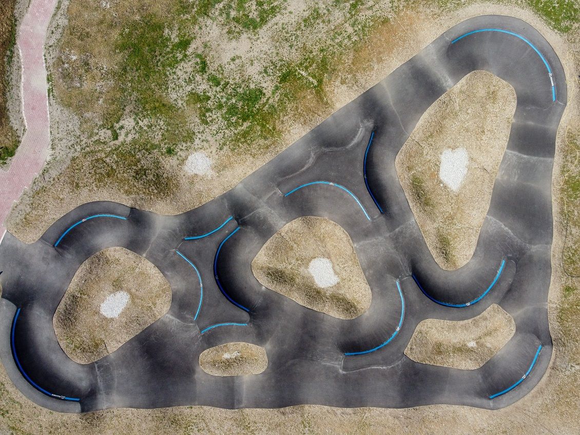 Der Leobersdorfer Pumptrack bietet auf einer Fläche von ca. 1.300 Quadratmetern rund 545 Quadratmeter befestigte Fahrbahnfläche. Das abwechslungsreiche Kurs-Layout ist so designed, dass der Pumptrack in alle Richtungen befahren werden kann und an mehreren Punkten gezielte, sichere Richtungswechsel (sogenannte »Transfers« oder »Transitions«) ermöglicht.