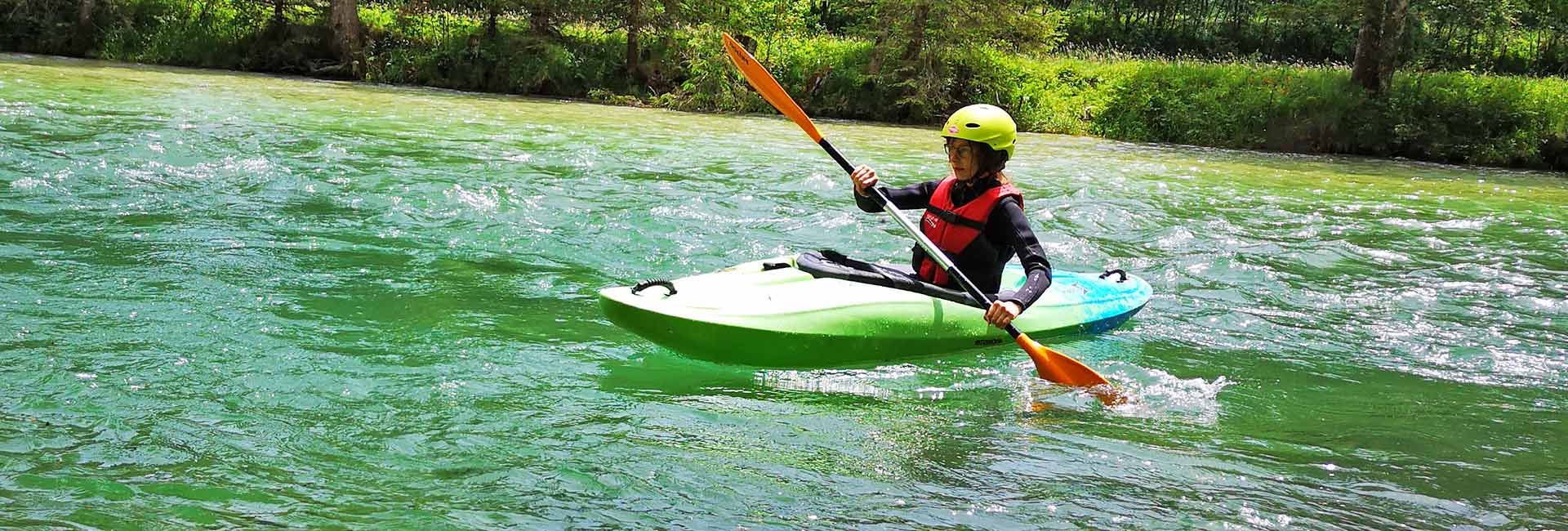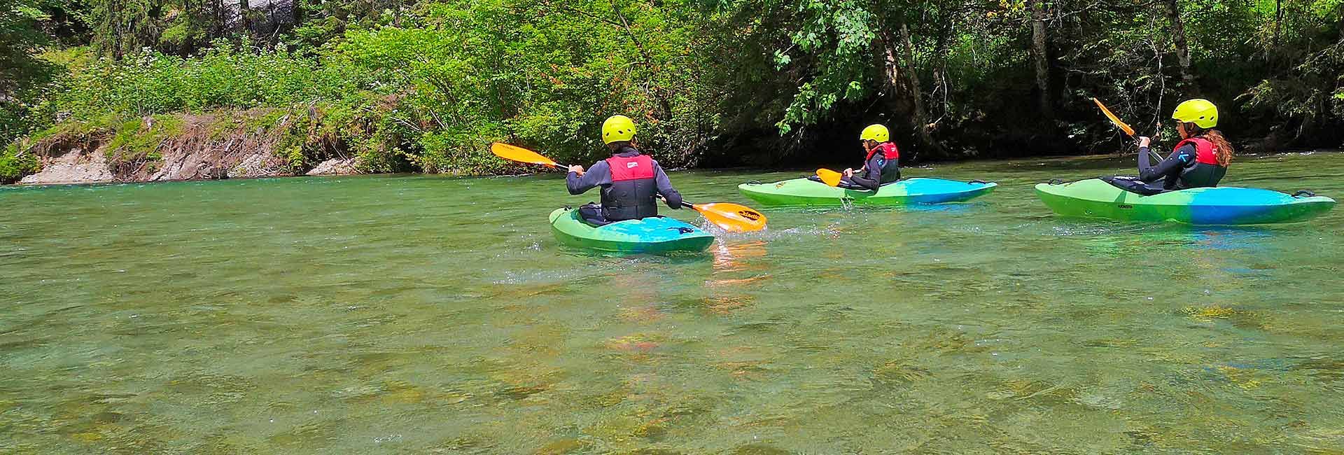 Das Kajak bietet eine sportliche Möglichkeit einen Wildbach zu befahren. Wir bieten unterschiedlich lange Kurse dafür an. Vom Schnuppertag bis zum mehrtägigen Kurs ist alles möglich. Es ist ein schönes feeling mit dem Kajak durch die Stromschnellen zu paddeln. Allerdings muss man sich vorsichtig herantasten, da das Kajak in den Wellen auch etwas kippelig wird und so mancher unfreiwillig den ersten Teil der Eskimorolle probiert hat.