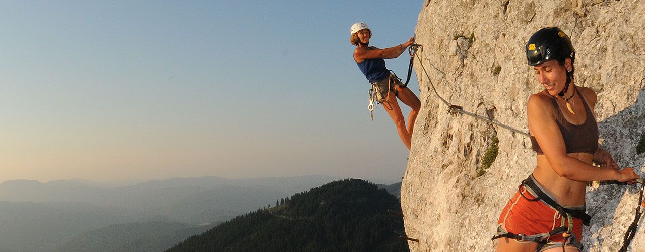Unsere geführten Klettersteigtouren bieten die Möglichkeit gut gesichert das vertikale alpine Gelände kennen zu lernen. Es ist faszinierend in einer Felswand zu klettern und luftigen Ausblicke zu erleben. Es ist eindrucksvoll die Berge auf diese Art zu erleben. Vor der Klettersteigtour gibt es eine ausführliche Einschulung mit dem Klettergurt, den Karabinern und dem richtigen Umgang damit. Durch die Felswand wird entlang des Sicherungsseils geklettert. Im Klettersteig sind Halte – und Trittbügel zum leichteren raufklettern montiert. Es ist eine spannende Bergtour die unvergessliche Eindrücke hinterläßt!Flying Fox Alpin