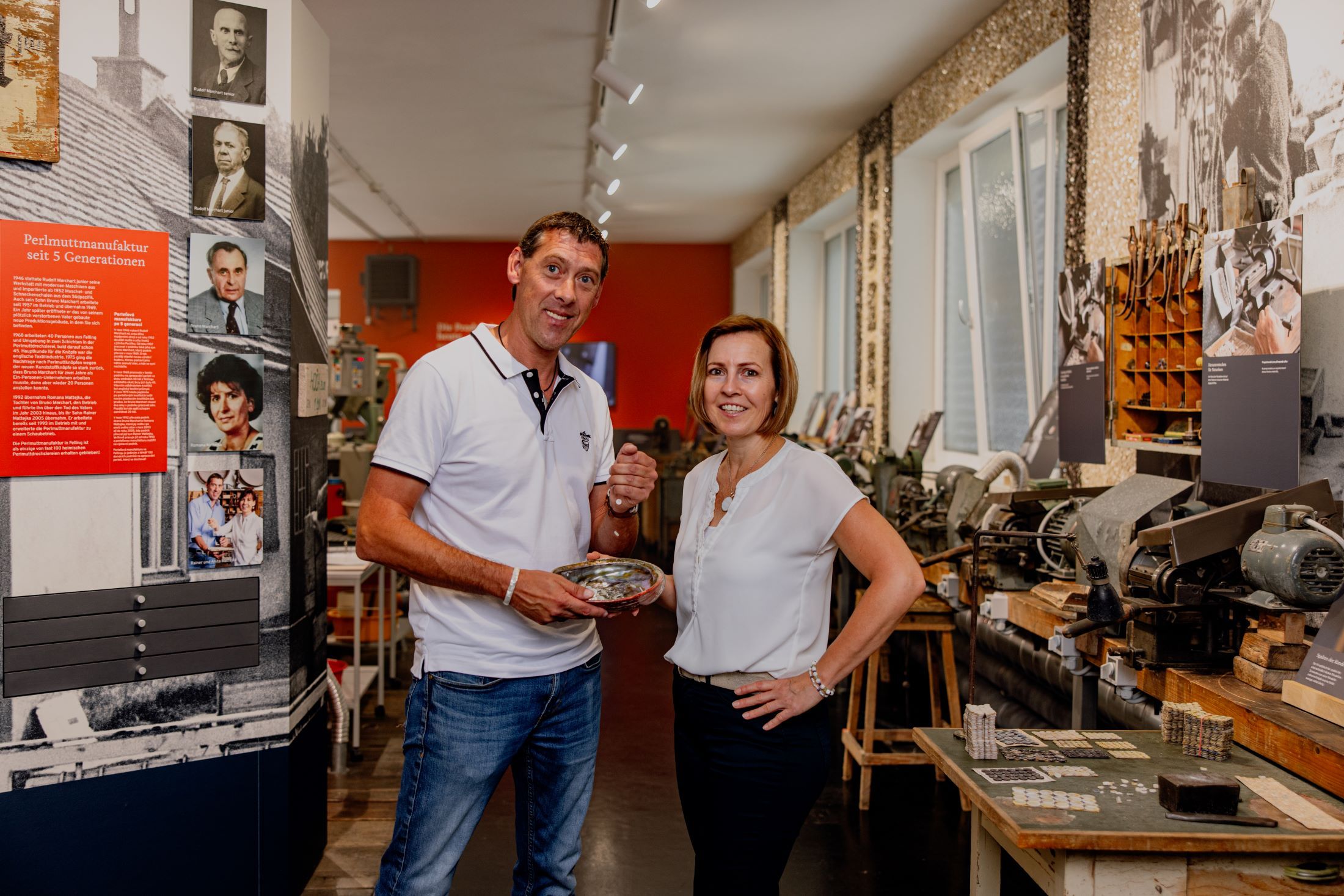 Seit 115 Jahren Firmengeschichte wird das traditionelle Handwerk der Perlmuttverarbeitung hier als Familienbetrieb mit großer Leidenschaft gepflegt.