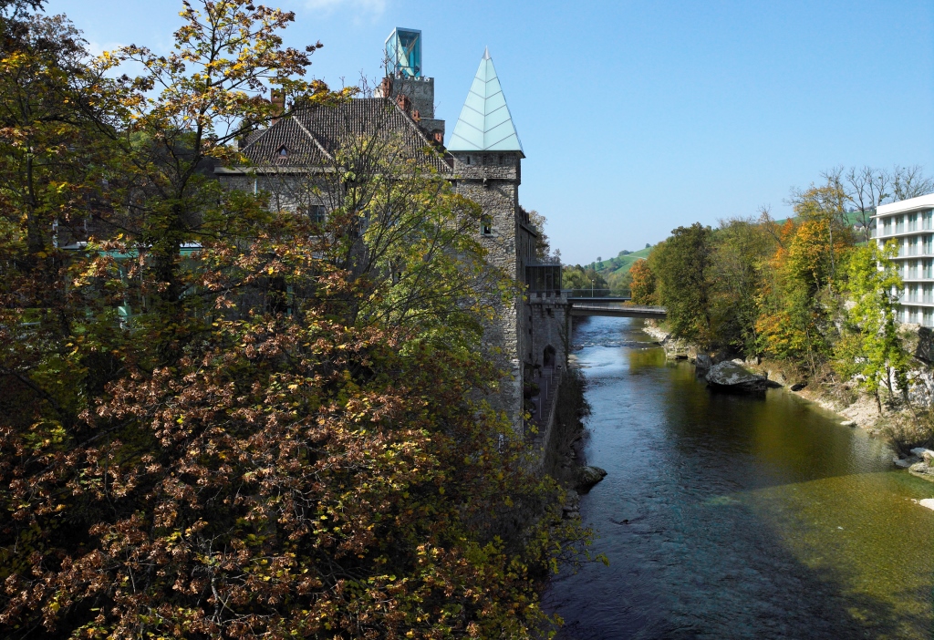 Bereits von außen lässt sich erahnen, dass hinter diesen Mauern kein klassisches Schloss liegt. Der Glaskubus auf dem Schlossturm zeugt schon weithin sichtbar von dem Mut des Stararchitekten Hans Hollein, Altes mit Neuem zu verbinden. So hat er auch im Inneren des Schlosses einen Konzertsaal geschaffen, der seinesgleichen sucht. Im Kristallsaal erklingen Weltstars ebenso wie Schüler:innen der Musikschule. Hochkultur und Volkskultur sind gleichermaßen passend umrahmt und locken zahlreiche Besucher:innen.