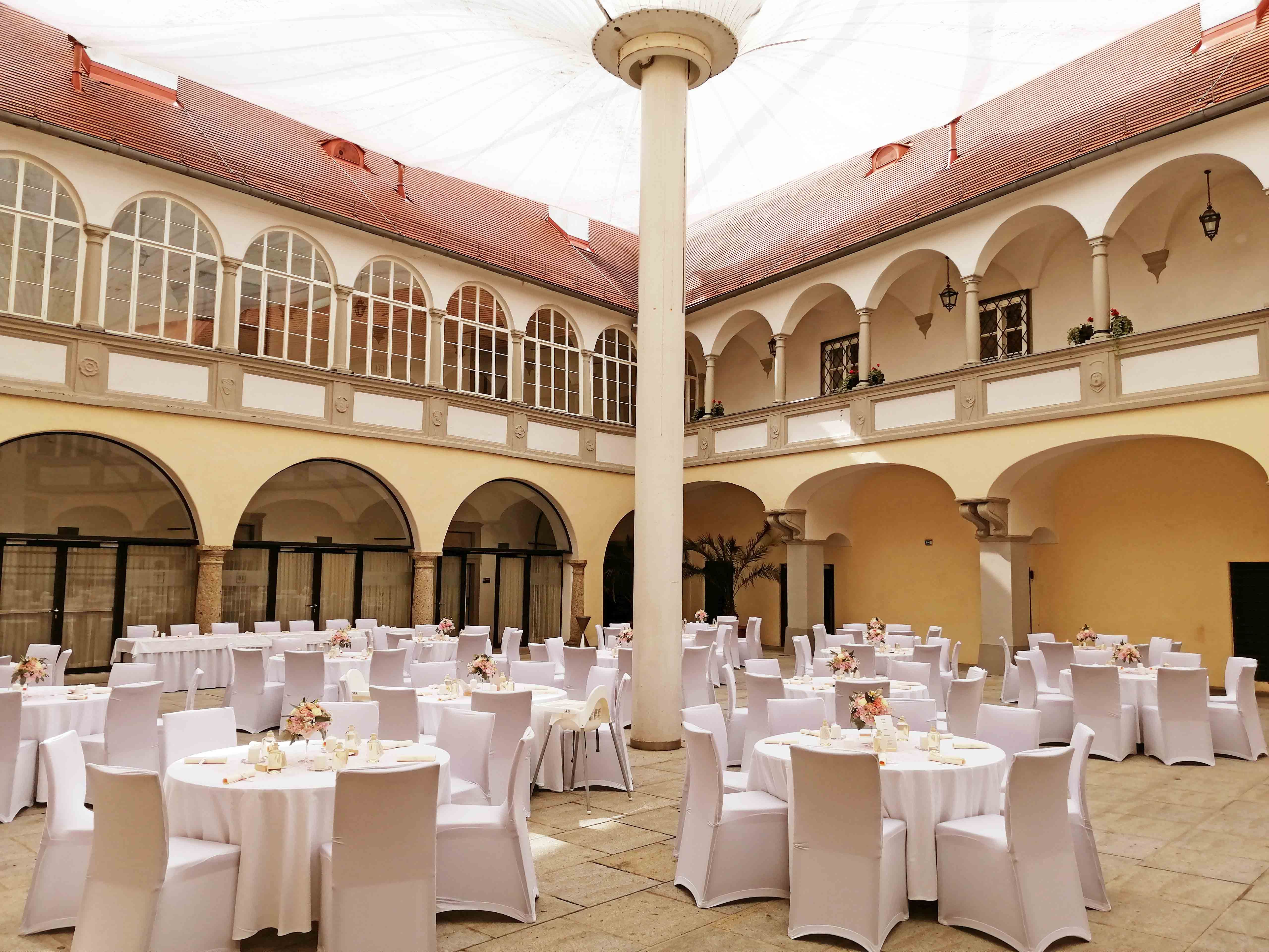 Unterschiedlich große Räumlichkeiten mit einer Kapazität von zehn bis 200 Personen bieten den idealen Rahmen für Hochzeiten, Veranstaltungen und Feiern, sowohl für den betrieblichen, als auch privaten Anlass. Für Großveranstaltungen ist der überdachte Innenhof mit einer Größe von 484m² perfekt geeignet. Witterungsgeschützt und dennoch im Freien wird jede Veranstaltung zum Vergnügen.