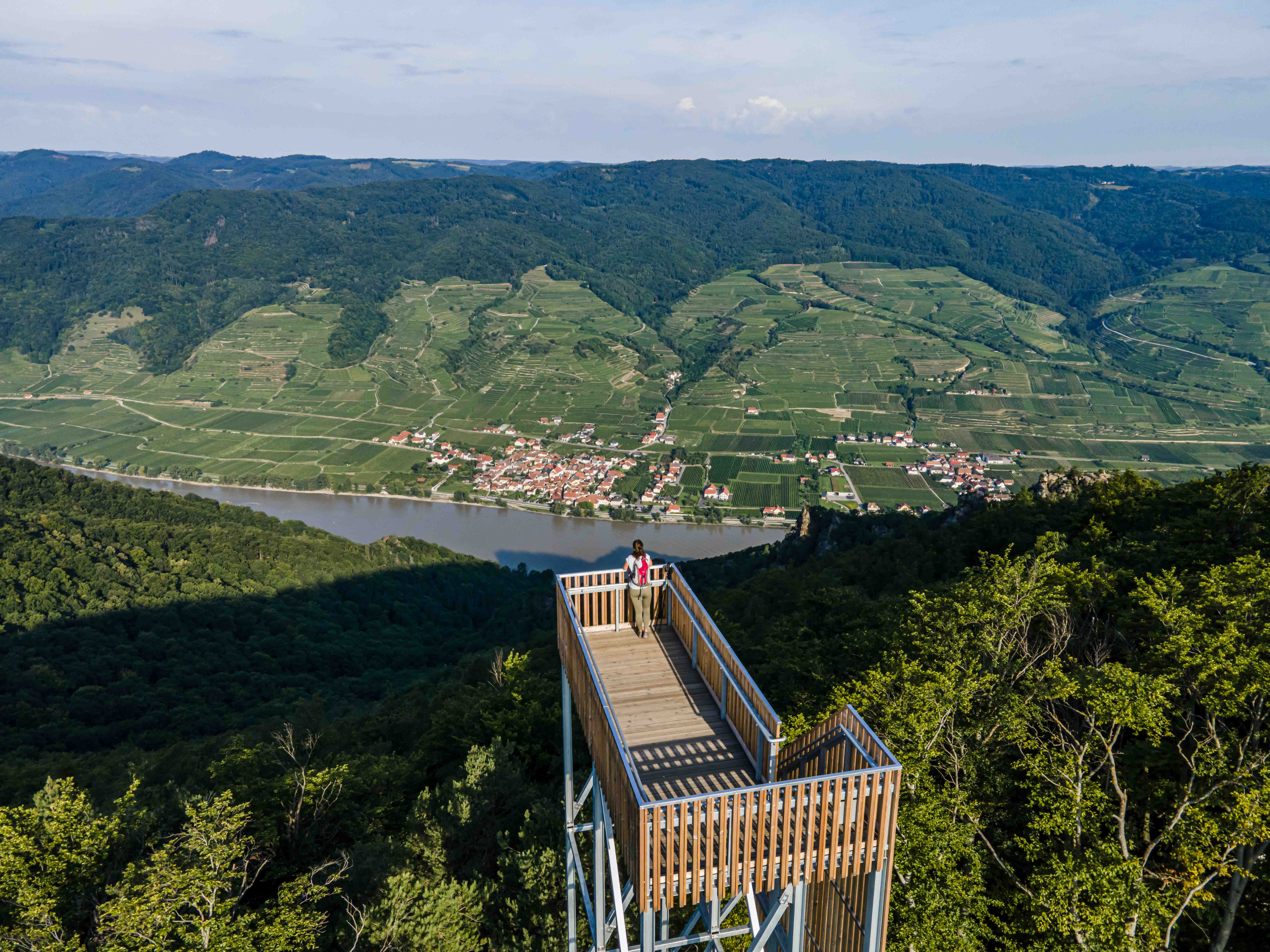 Aussichtswarte am Seekopf mit Panoramablick in die Wachau: Aussichten zur Donau, zum Stift Göttweig, zu Ötscher und Dürrenstein und ins Tullnerfeld