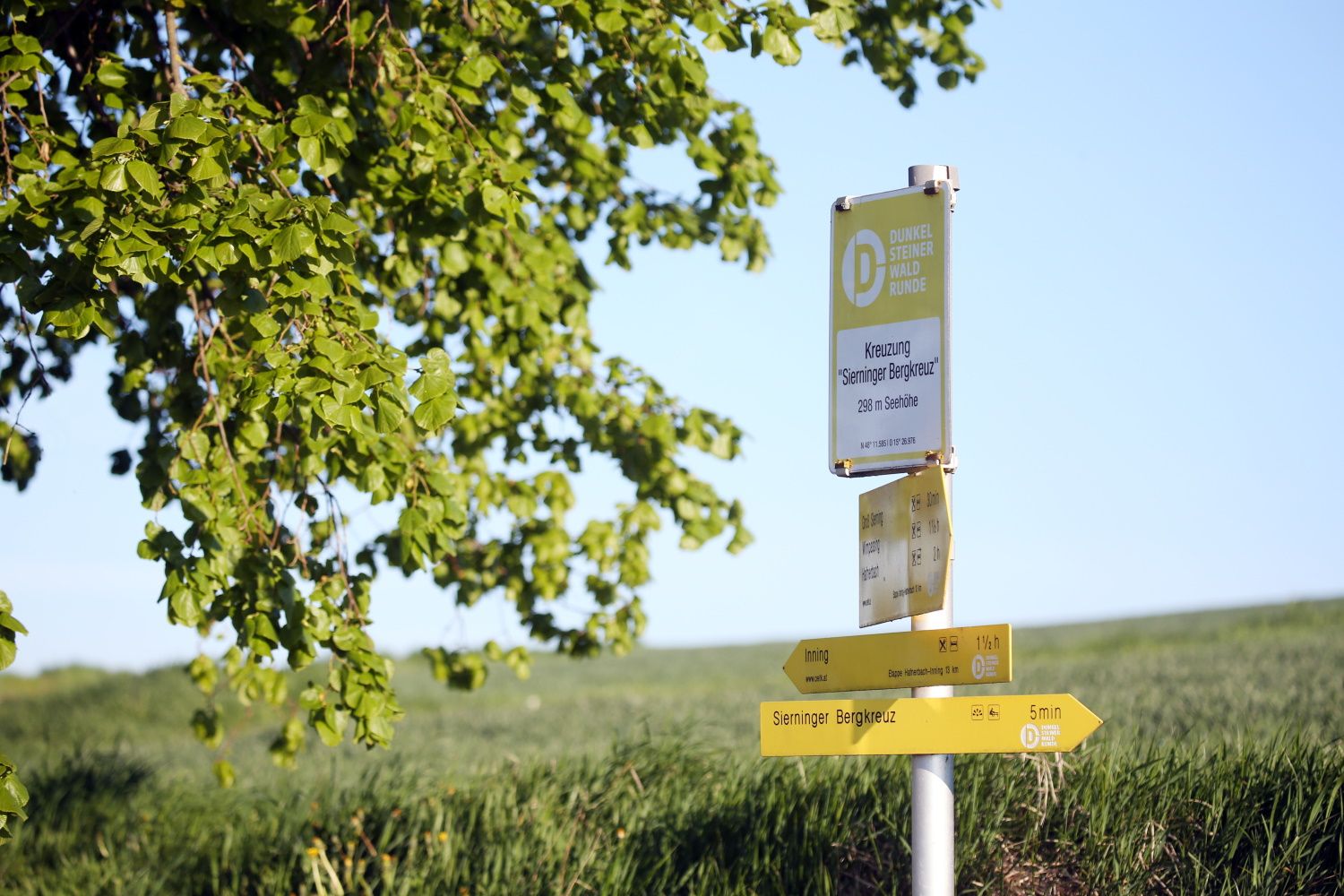 Das schon von weiter Ferne erhabene „Sierninger Kreuz“ steht in einem Beton Postament und ist aus dem selbigen Material mit Armierungseisen in einem Element gegossen worden. Es befindet sich auf einer Seehöhe von 301m. Dieses attraktive Wanderziel ist auch Teil der "Dunkelsteinerwaldrunde". Die Fußwegstrecke vom Ortsteil Groß-Sierning - Hauptstraße über die Berggasse ist ein Weg von mehreren die man erwählen kann. Das Kreuz wird von zwei Sitzbänken zum verweilen flankiert. Desgleichen von Bäumen abgeschattet.