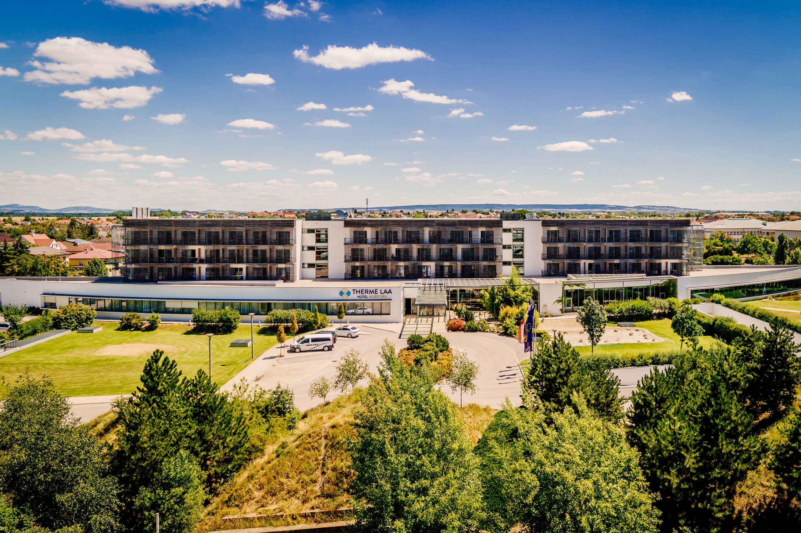 Die Becken der Therme Laa werden von einer Natrium-Chlorid-Jod-Mineral-Thermalquelle gespeist. Insgesamt erstreckt sich die gesamte Wasserwelt der Therme Laa auf rund 7.800 Quadratmetern. Sie besteht aus einem großen Thermalbecken im Zentrum der Anlage mit Verbindung zum Außenpool, einem kleineren Massage Pool, in dem man sich auf Luftsprudelliegen oder der Massagewand von Wasserstrahlen massieren lassen kann und einem Solebecken zum Treibenlassen. Zusätzlich dazu lädt für den sportlichen Ausgleich das Aktivbecken im Außenbereich zum Schwimmen ein. Die Wasserrutsche, ein Spaß für Kinder und Junggebliebene, vervollständigt das Angebot der Wasserlandschaft.