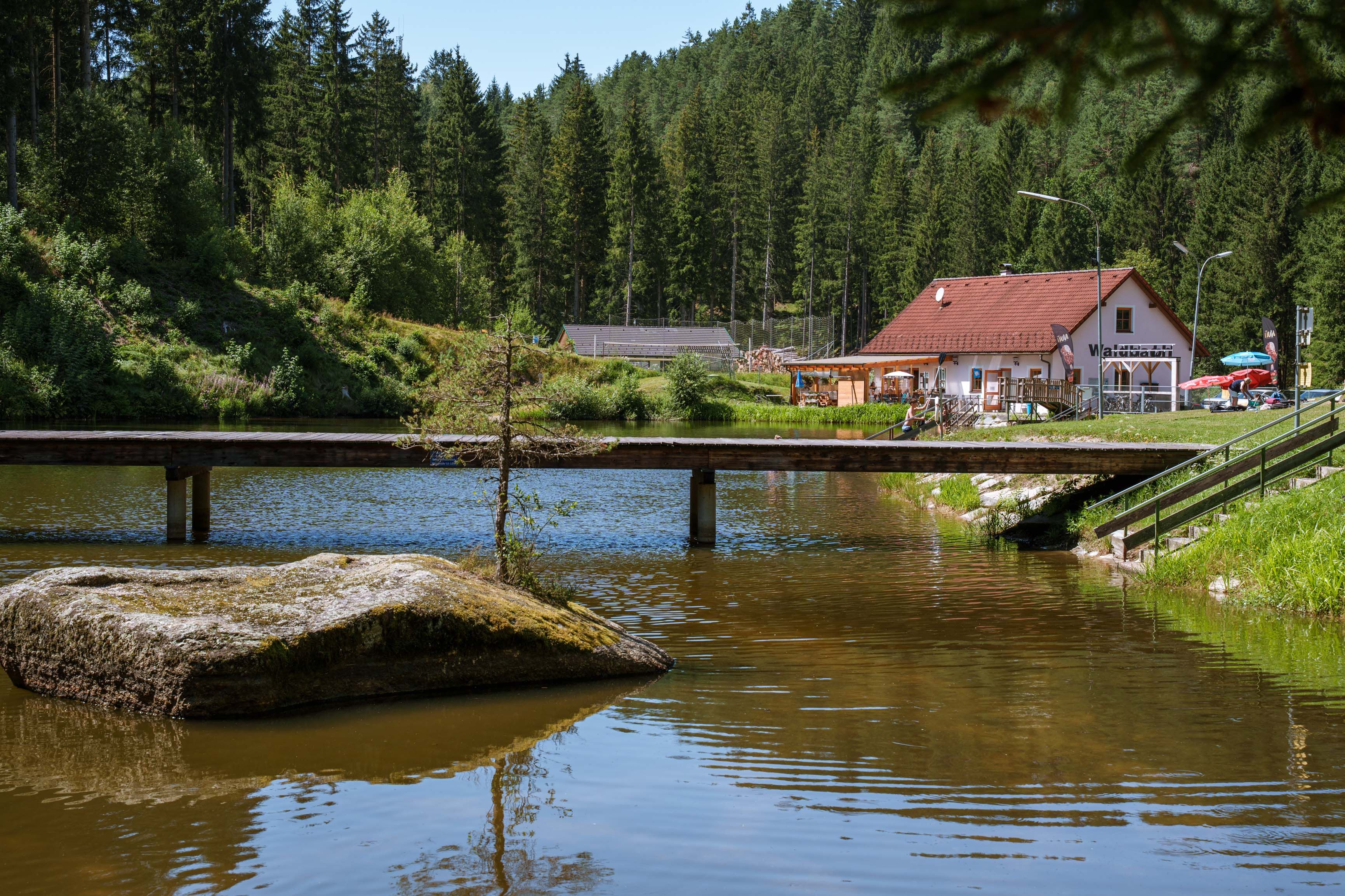 Neu ist ein rund zwei Meter breiter Holzsteg der den Teich überspannt. Das Wasser des Teiches wird jährlich auf ihre Qualität geprüft.