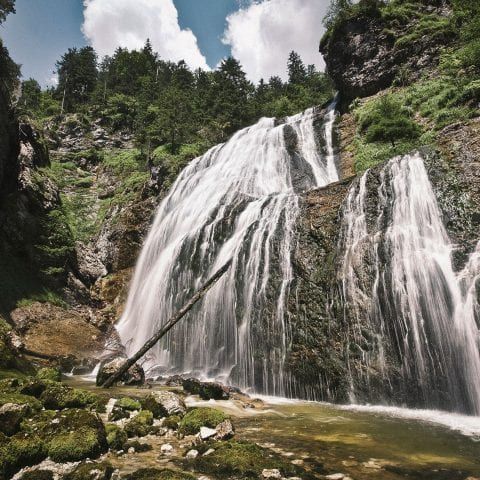 Die Palfauer Wasserlochklamm südöstlich vom Hochkar ist ein echtes Highlight für alle Naturliebhaber. Schmale Canyons, rauschende Wasserfälle, tiefe Ein- und weite Ausblicke machen die rund eineinhalbstündige Wanderung bis zum Wasserloch zu einem echten Erlebnis. Vorbei an fünf imposanten Wasserfällen mit insgesamt 152 Metern Fallhöhe und über Holzbrücken windet sich der Steig Stufe für Stufe nach oben. Wer die letzten Hürden genommen hat, wird auf der Aussichtskanzel mit tiefen Einblicken in die Quellhöhle und großartigen Ausblicken über das Salzatal belohnt. Festes Schuhwerk empfohlen!