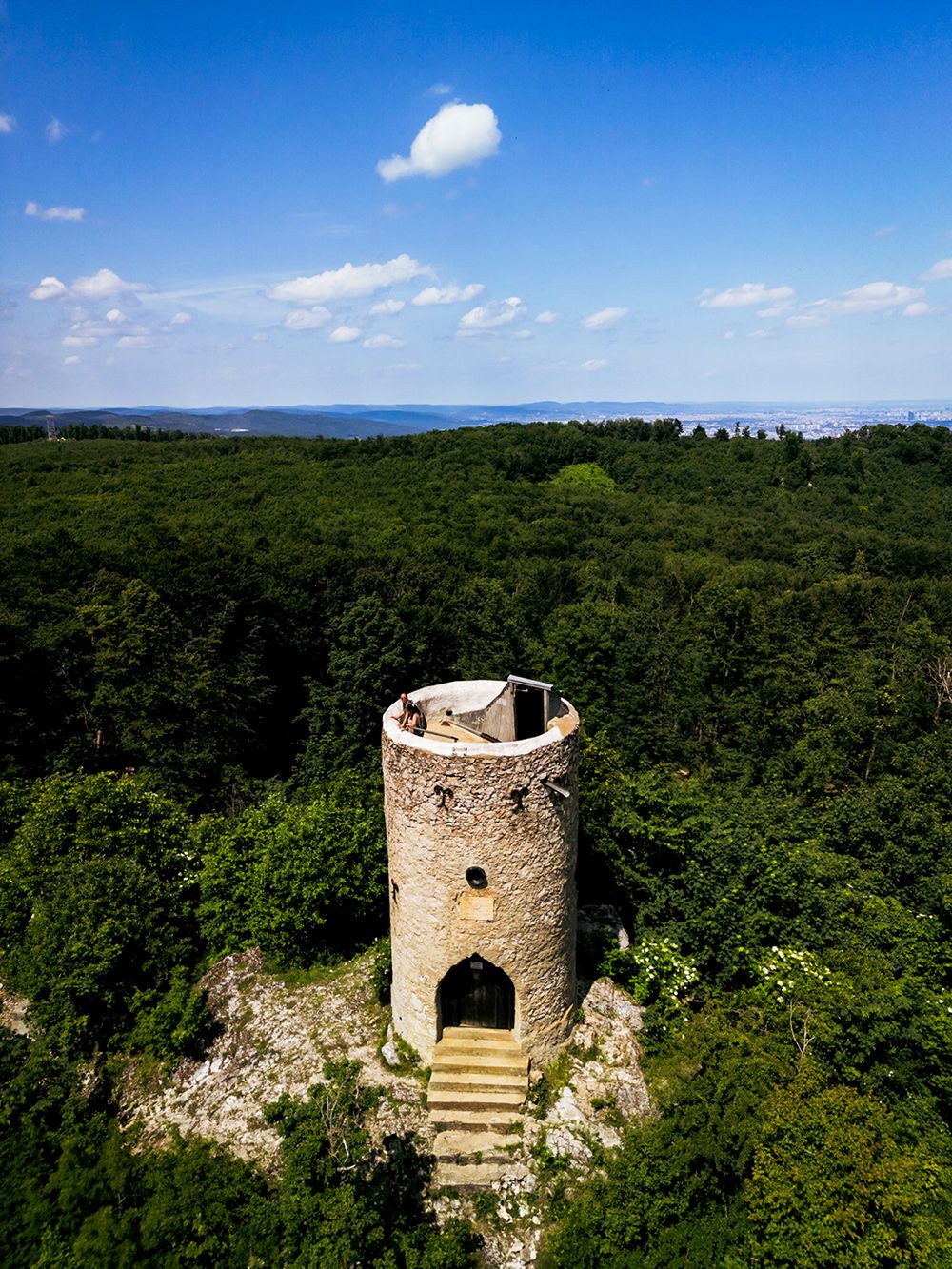 Die Wilhelmswarte beeindruckt durch den Rund-um-Blick nur knapp über den Baumkronen des Biosphärenpark Wienerwald.