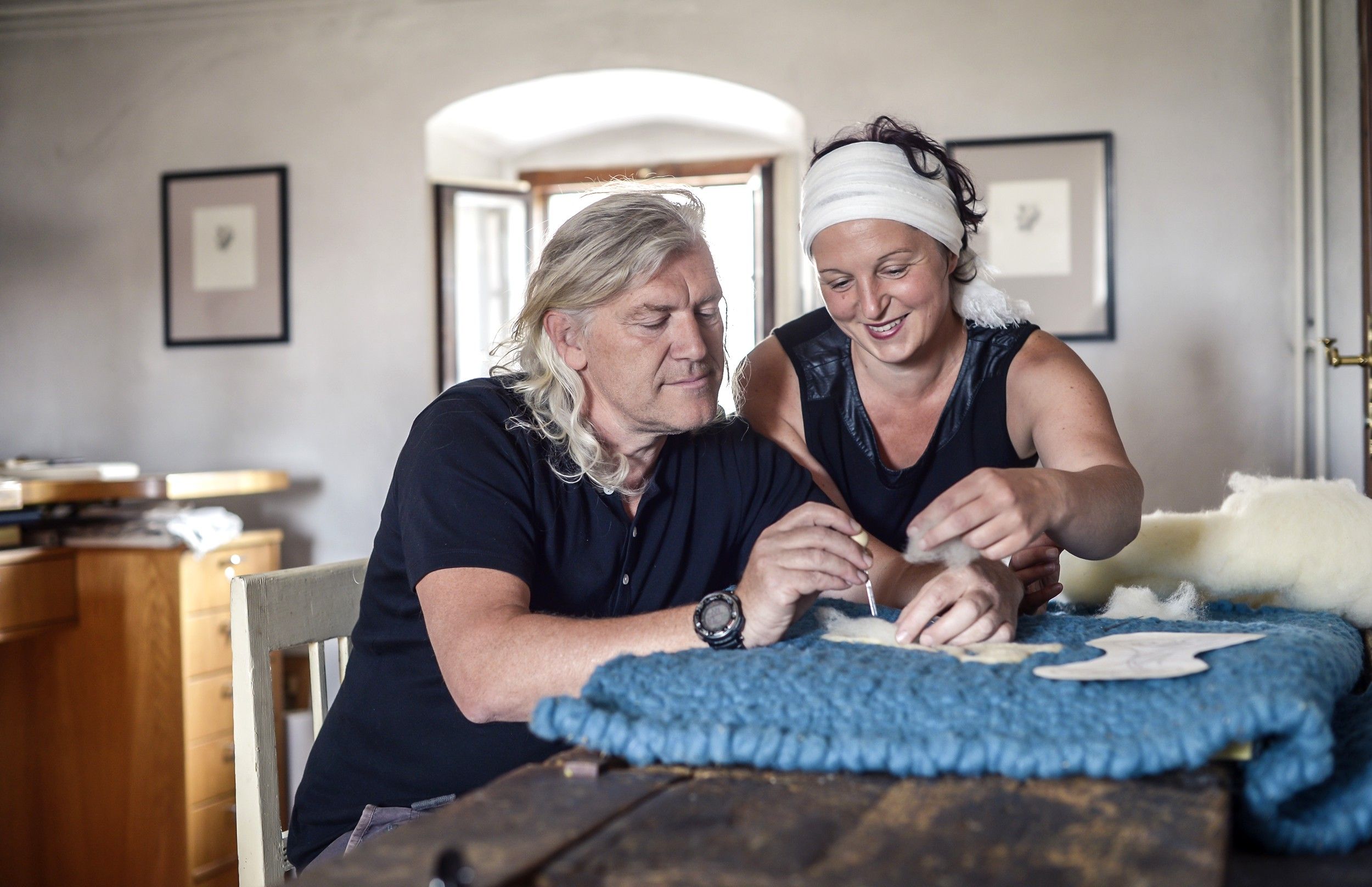 Mit frischen Ideen belebt sie die alte Weberkunst: Spezielle Woll-Tattoos zum Beispiel machen so einen Teppich zum Unikat. Ein besonders intensives Erlebnis: Selbst am Webstuhl stehen, das Handwerk des Webens und die Technik des Nadelfilzens ausprobieren und einem Teppich eine ganz persönliche Note verleihen. – Alles möglich bei einem Workshop in der wollschmiedn! Vielleicht lässt sich dann auch nachvollziehen, wie eine Juristin der Weberei verfallen kann...