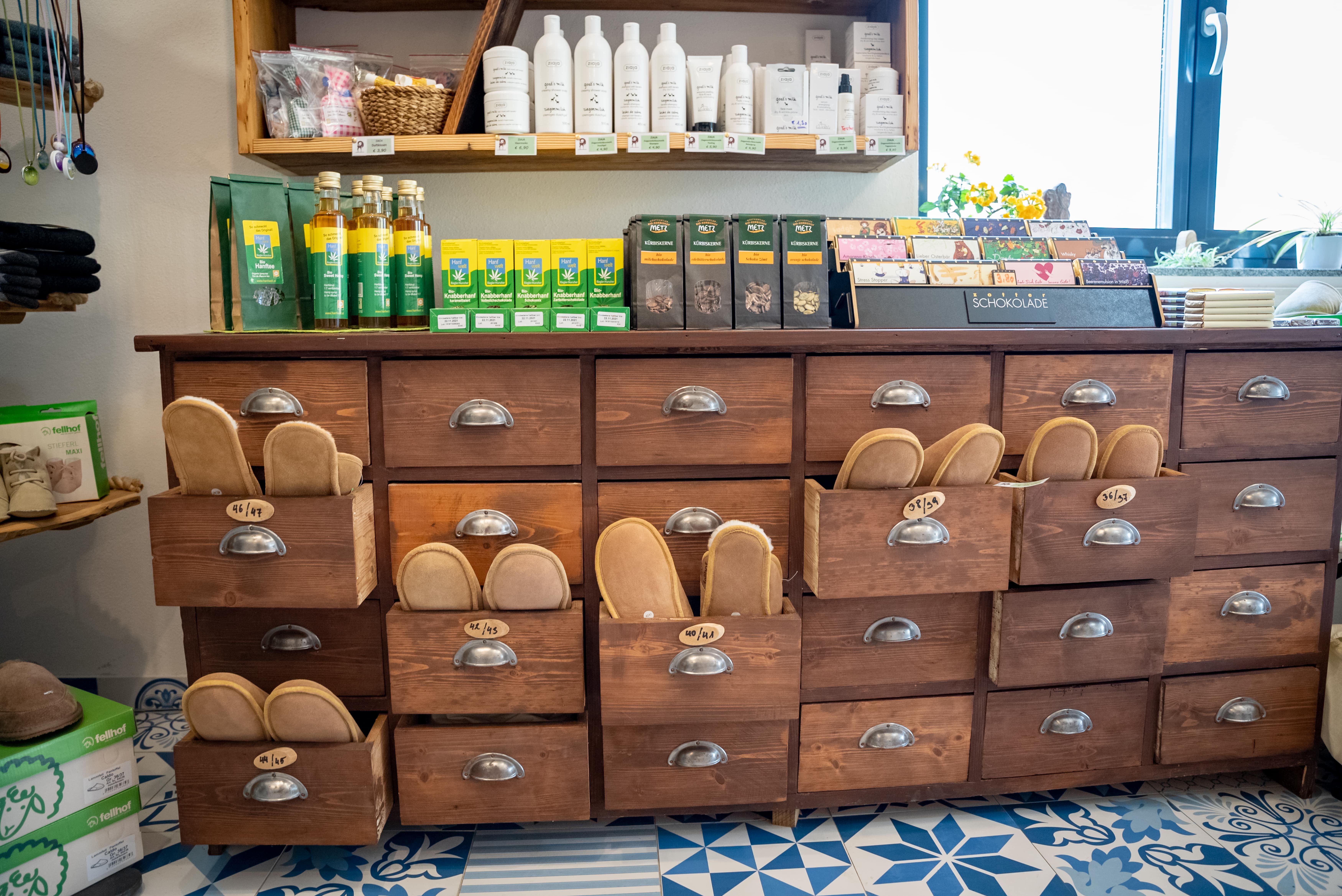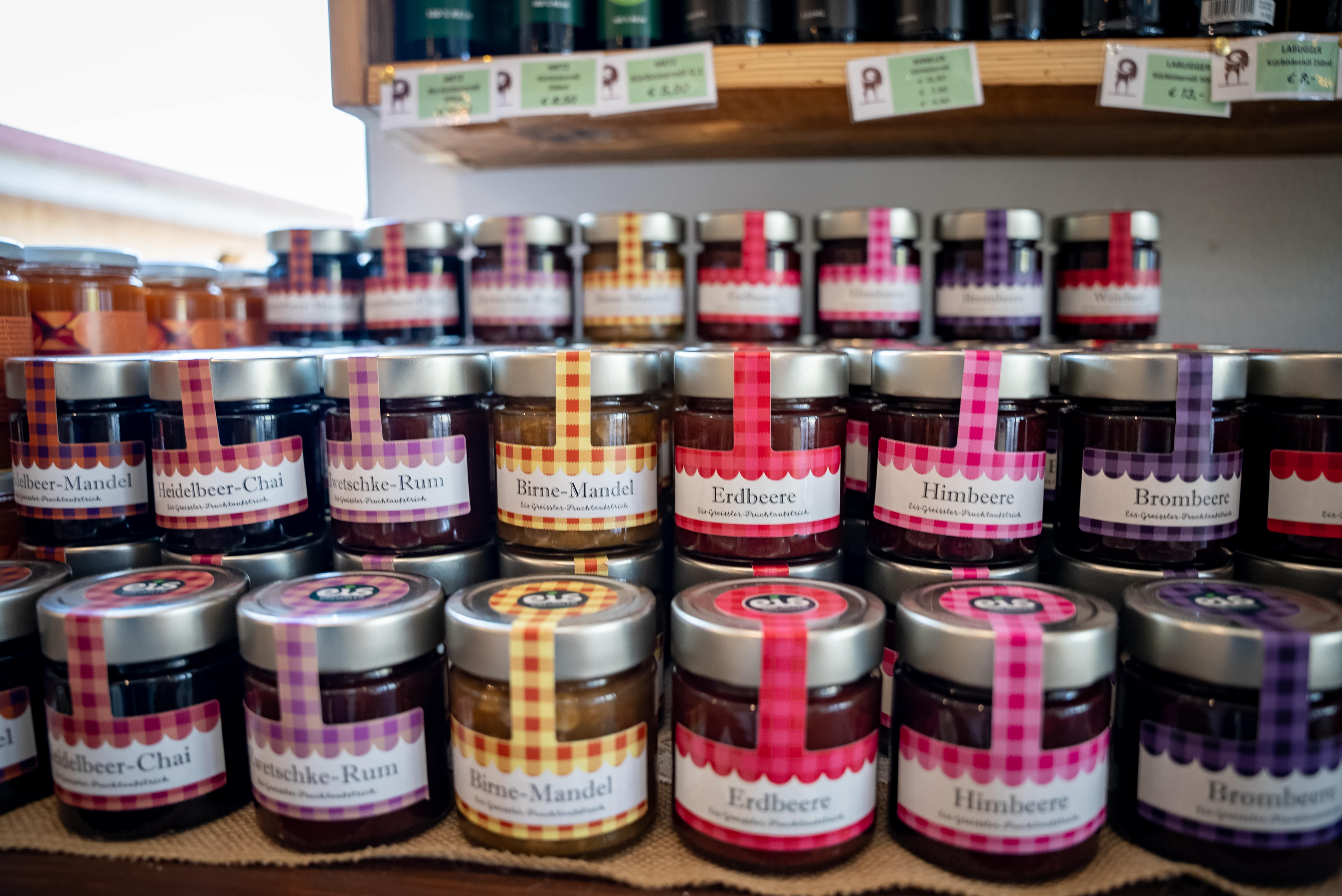 Das exquisite Ziegenfrischkäsesortiment ist neben einem bunten Sortiment aus der Region und ganz Österreich im Hofladen erhältlich. Dort ist auch das einzigartige "Goaß-Kino": Durch zwei große Fenster können die Ziegen beim Spielen, Fressen und Chillen beobachtet werden.
