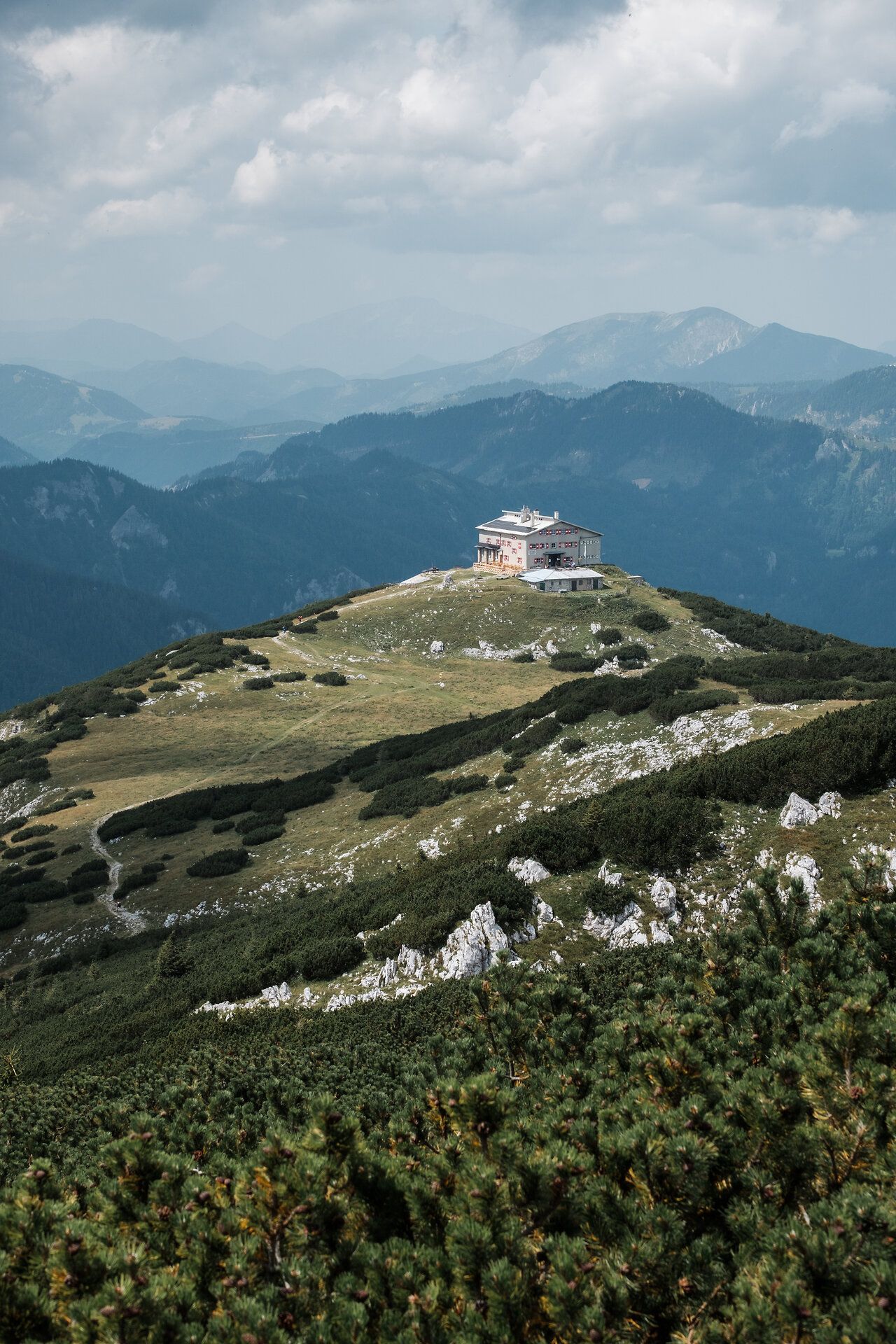 Nach der Auffahrt mit der Rax-Seilbahn öffnet sich ein weites Hochplateau, auf dem sich Hütte an Hütte reiht – vom Ottohaus über die Neue Seehütte bis zur Edelweißhütte. Dazwischen laden schöne Aussichtsplätze zum Innehalten ein.