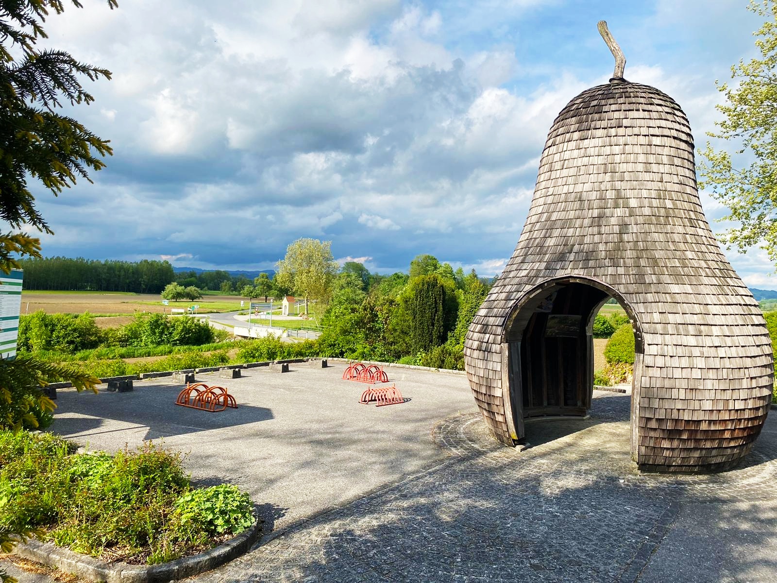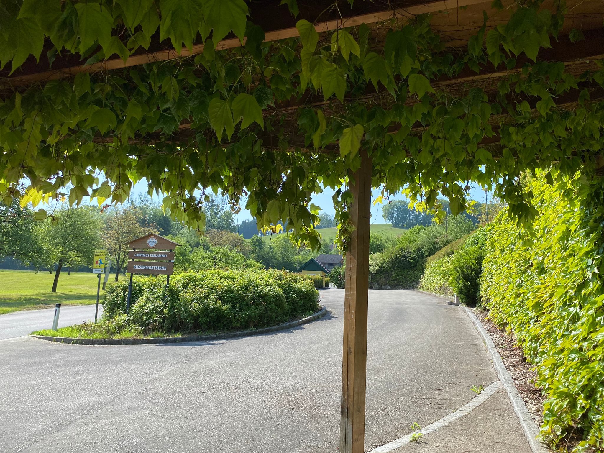 Stellplatz am Parkplatz vom Parlamentwirt, mitten in der Donaulandschaft, direkt am Donauradweg, vor dem Wirtshaus steht die "Mostviertler Riesenmostbirne" - ein Symbol für das Mostviertel.