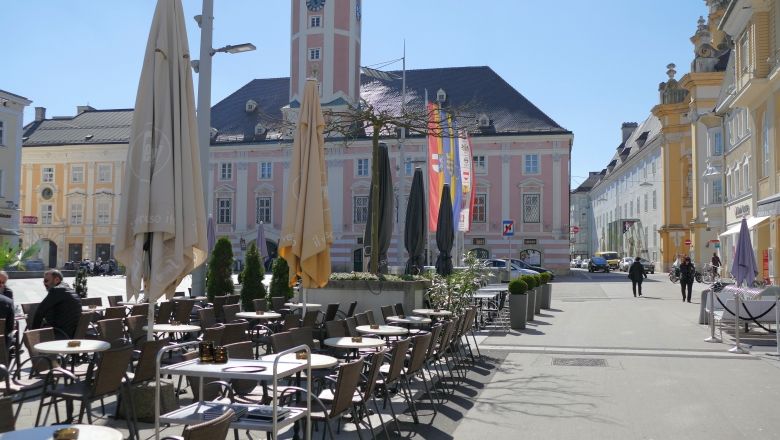 seine jungen und erwachsenen Gäste mit günstigen Menüs und Snacks sowie tollen Frühstücks- und Eis-Variationen. Bei schöner Witterung ist der großzügig angelegte Gastgarten direkt am historischen Rathausplatz ein Muss.
