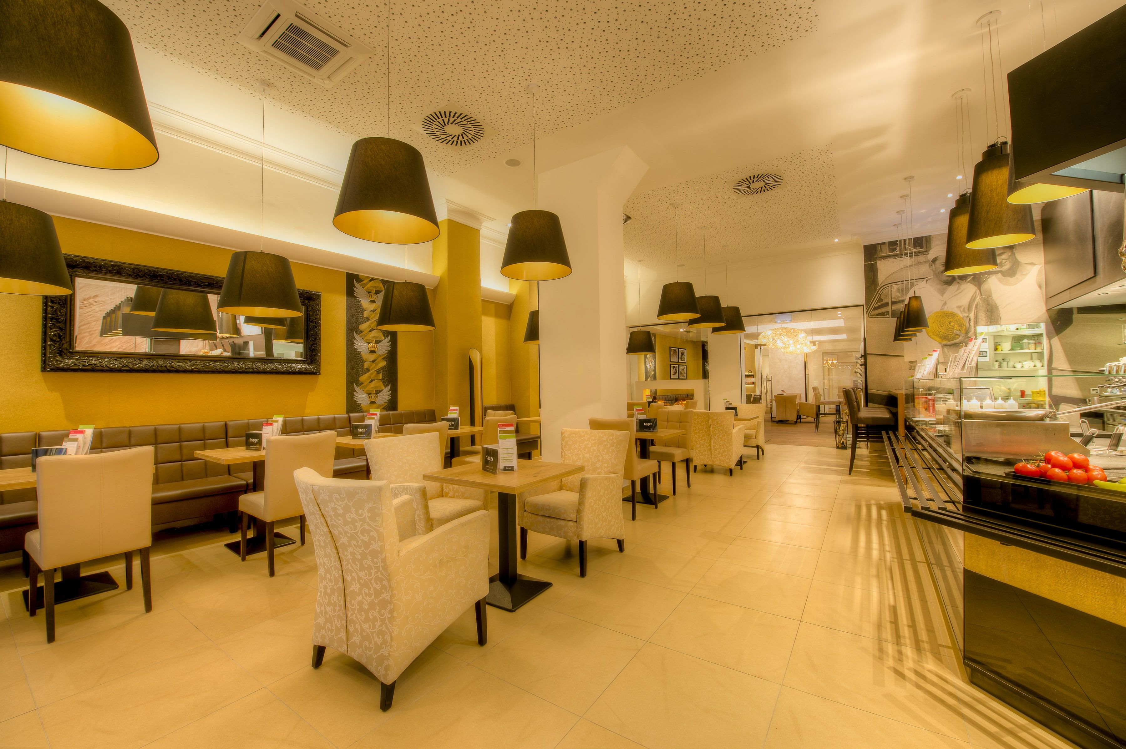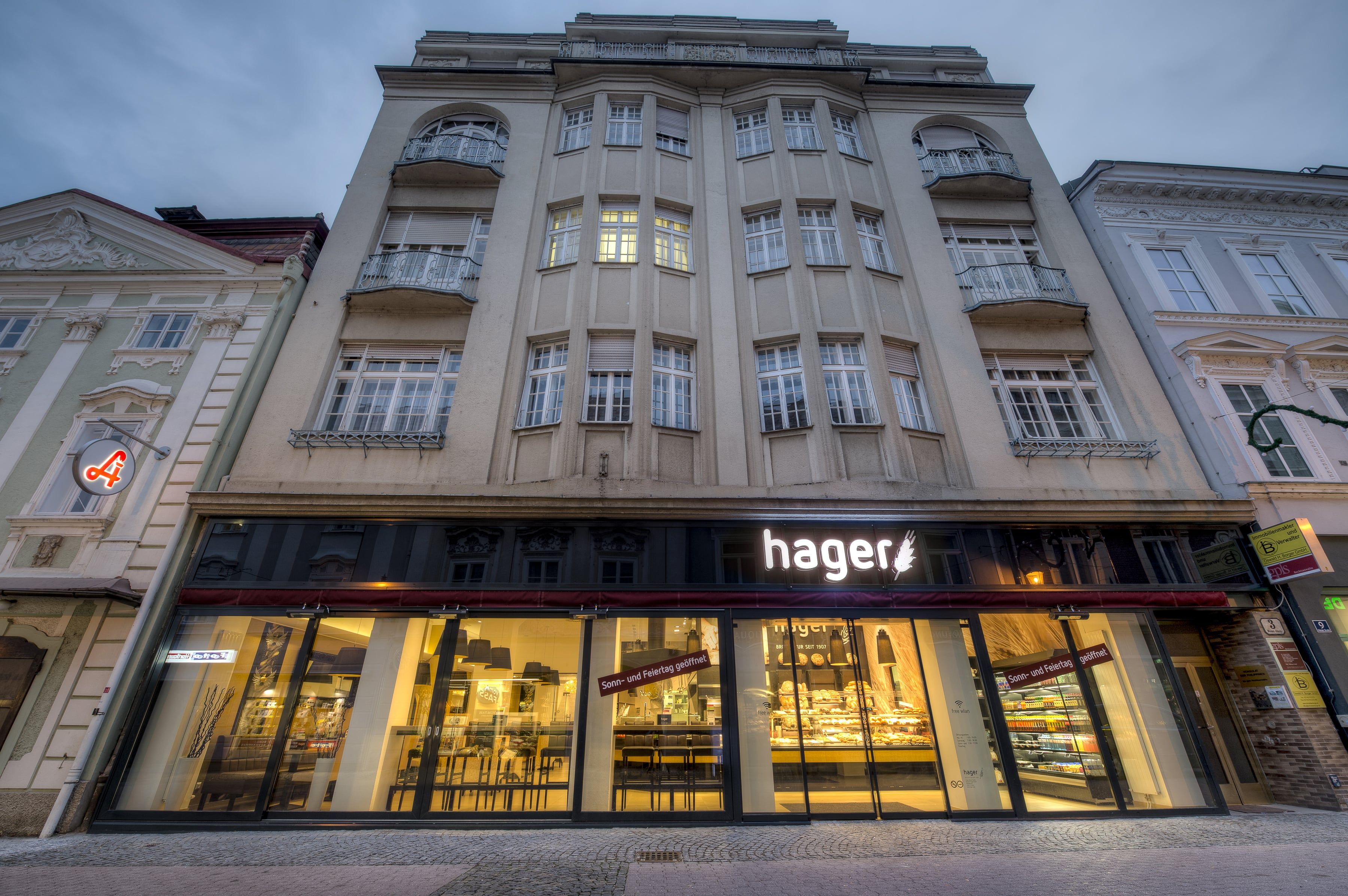 Mitten in der Altstadt von St. Pölten lockt das Café Hager zum genussvollen Zwischenstopp. Im großzügigen Kaffeehaus werden handgemachte Gebäck- und Mehlspeis-Spezialitäten ebenso serviert wie Kaffeevariationen, Frühstück von klein bis groß oder Snacks für den größeren Hunger. Das schöne Glaspanorama gibt derweil den Blick auf die Vorüberbummelnden in der belebten Fußgängerzone frei.