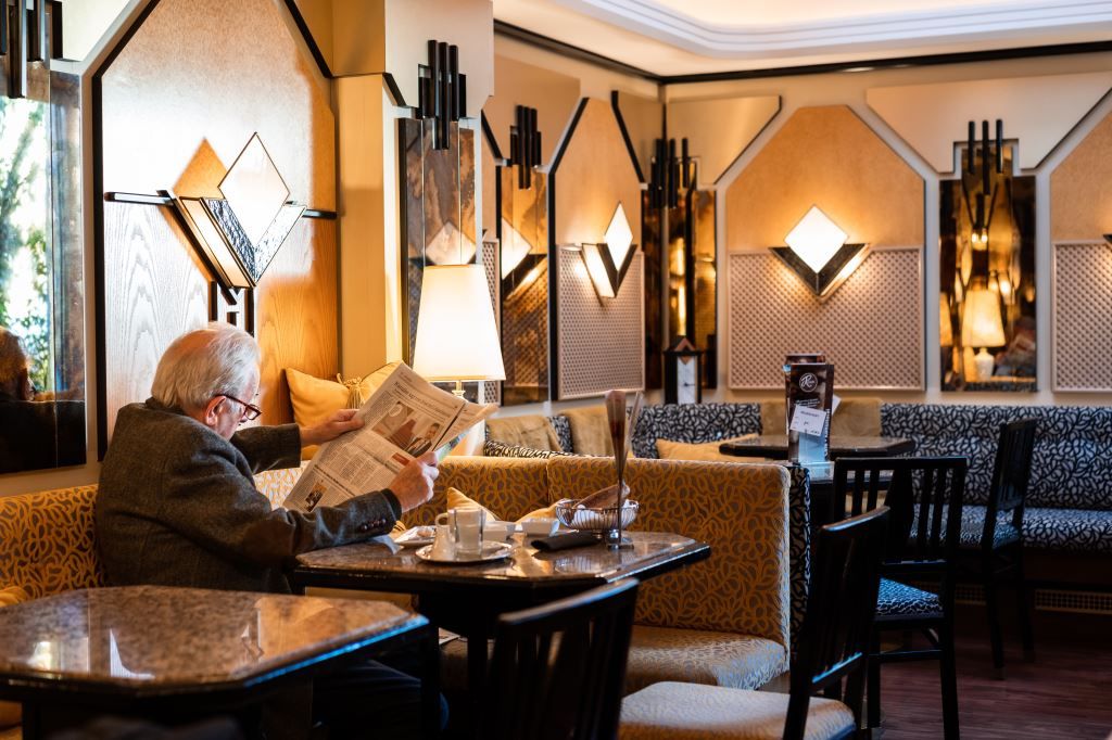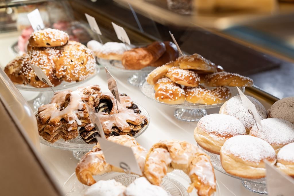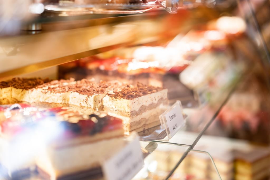 Diese Köstlichkeiten werden nach traditionellen Rezepten hergestellt, die sich seit mehr als 100 Jahren im Familienbesitz befinden. Ein sonnendurchfluteter Wintergarten eröffnet den Blick in das Grün der benachbarten Gärten.