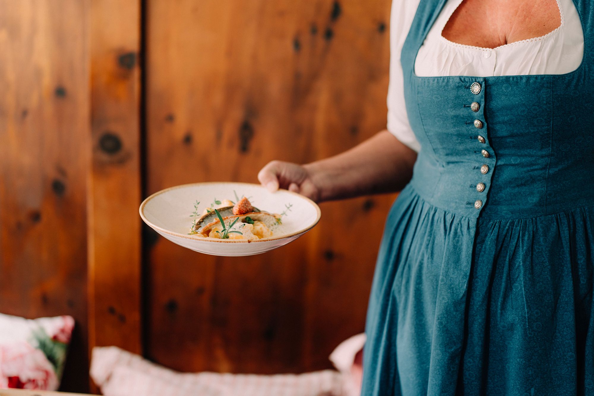 Ein Wirt mit Leib und Seele, die das Traditionshaus aus dem 16. Jahrhundert nach wie vor prägt und es zu dem gemacht hat, was es heute ist: ein Haubenlokal mit qualitätsvoller österreichischer Küche. Der ofenfrische Schweinsschopfbraten mit Erdäpfelknödeln und Krautsalat passt dabei perfekt ins Bild. Bei den Desserts sind es die Topfennockerl in Butterbröseln oder die Hauscremeschnitte, die für den optimalen Ausklang sorgen. Die persönliche Note des Hauses entfaltet sich beim hausgeräuchertem Speck.