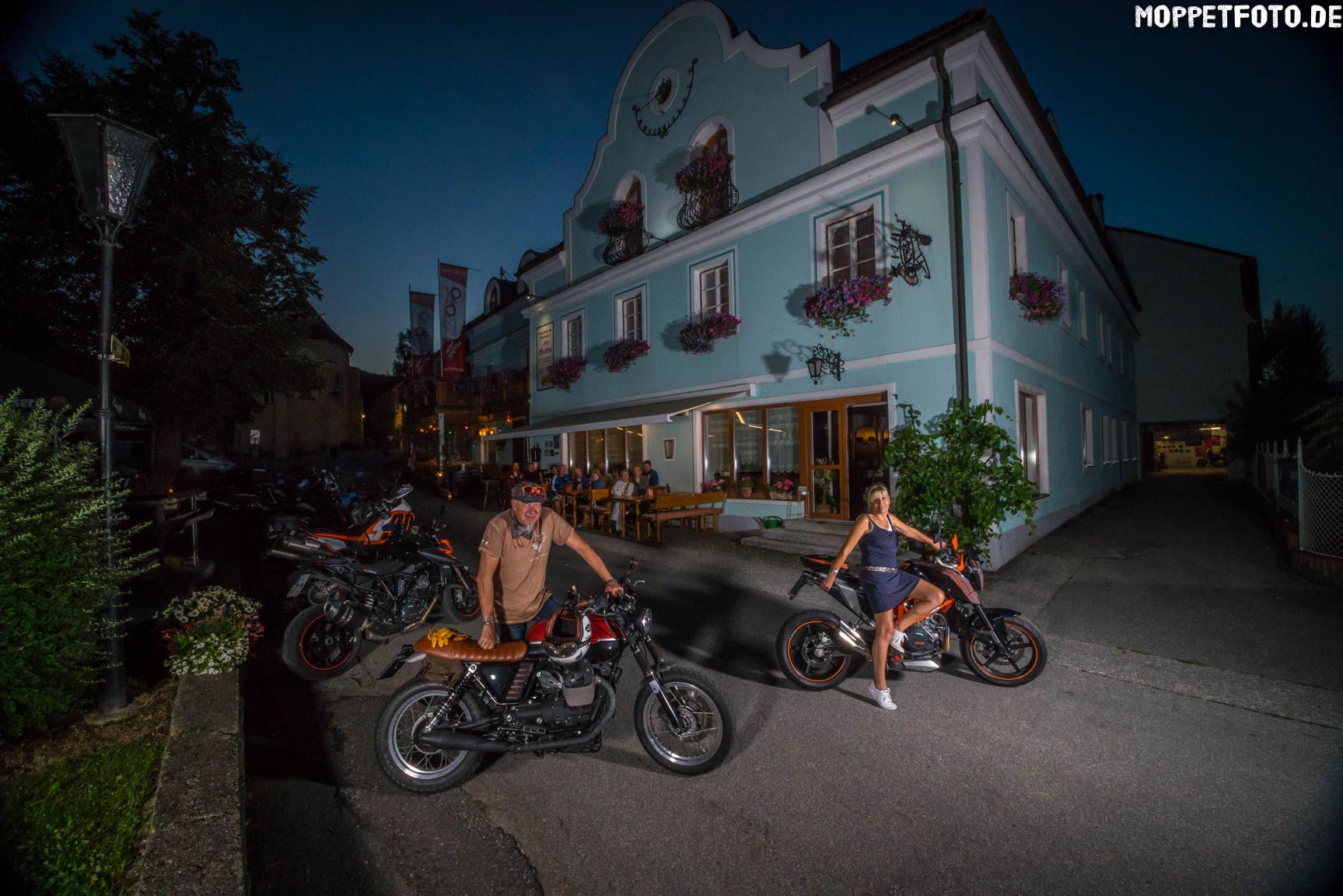 Drei Hacken? Die drei Elemente gelten als Symbole für Holz, Fleisch und Landwirtschaft und sind auch Zeichen der langen Geschichte des seit dem 18. Jahrhundert existierenden Gasthofes, der heute mit gemütlichen Zimmern, toller Küche und einem perfekten Angebot für Motorradfreunde zu punkten weiß. Die Region mit ihren romantischen, kaum frequentierten Straßen wartet nur darauf, auf dem Motorrad entdeckt zu werden. Die Wirtsleute Andi und Sylvia servieren die richtige Mischung aus verführerischem Benzinduft und kulinarischen Schmankerln. Das Waldviertel mit seiner Hügellandschaft und endlosen Kurven, gilt mit Recht unter den Genussbikern als "Geheimtipp".