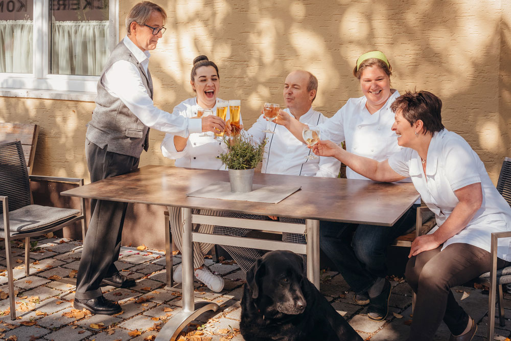 Für das große Finale im Gasthof Teufl sorgen die Nachspeisen. Selbst gebacken, stilvoll angerichtet und mit Charme serviert: Die flaumig und teuflisch gute Cremeschnitte spielt in einer eigenen Liga. Hierbei handelt es sich um ein uraltes Rezept aus Großmutters Zeiten. Tradition und Geschichte verkörpert auch die über 400 Jahre alte Holzdecke im Gastzimmer. Ein wenig tiefer, unten in Teufls Gewölbeweinkeller, lagern 480 verschiedene Exponate. Auf Wunsch können Gäste das Menü mit einer überzeugenden Weinbegleitung kombinieren. Wer nicht im Gasthof essen möchte, kann einpacken: Suppen, Salate, Fonds und klassische Gerichte gibt es zum Mitnehmen. Somit wartet ein gutes Stück Wirtshausküche für z‘Haus.