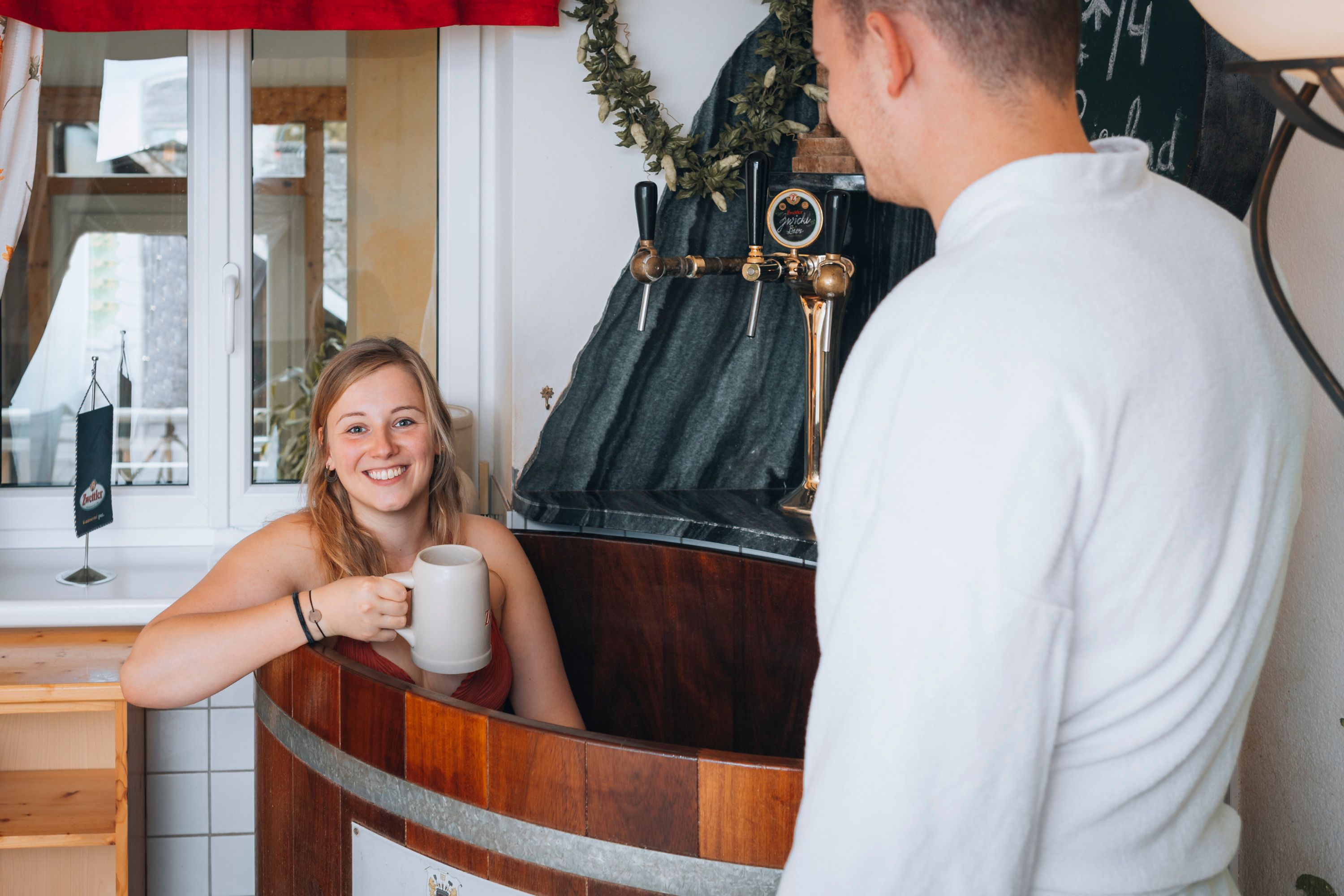 Neben Waldviertler Spezialitäten dreht sich im Gasthof zur Kirche alles rund ums Bier: Die regionalen Gerstensäfte munden, ebenso die Bier-Gerichte und -Menüs. Die Familie Schrammel geht aber noch einen Schritt weiter. In dem gemütlichen Wirtshaus wird obendrein ein Bier-Bad-Wochenende angeboten. Nach dem Sprung in die Bierwanne locken Wellness-Angebote mit Heubett oder Dampfkammer sowie Massagen. Bestens geschlafen wird in den neun zur Auswahl stehenden Themenzimmern. Mit frischer Energie können die Gäste diese aufstrebende Tourismusregion bestens erkunden. Beliebte Ausflugsziele sind das Waldviertler Mohndorf sowie die Whisky-Erlebniswelt Destillerie Haider.