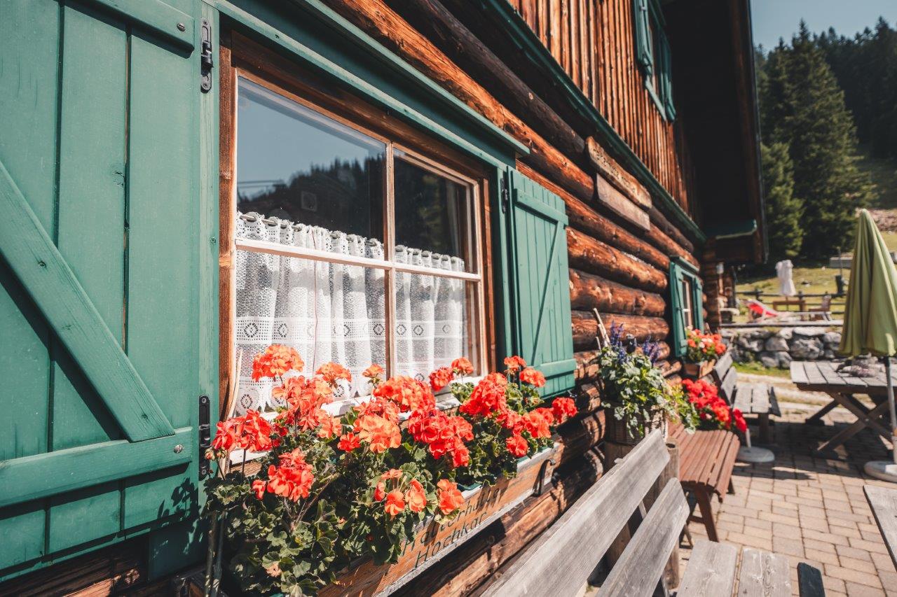 Die Almhütte bietet zwar kein kulinarisches Angebot, ist aber ein tolles Plätzchen, um zu verweilen, das Geläute der Kuhglocken zu genießen und sich mit der mitgebrachten Jause zu stärken.