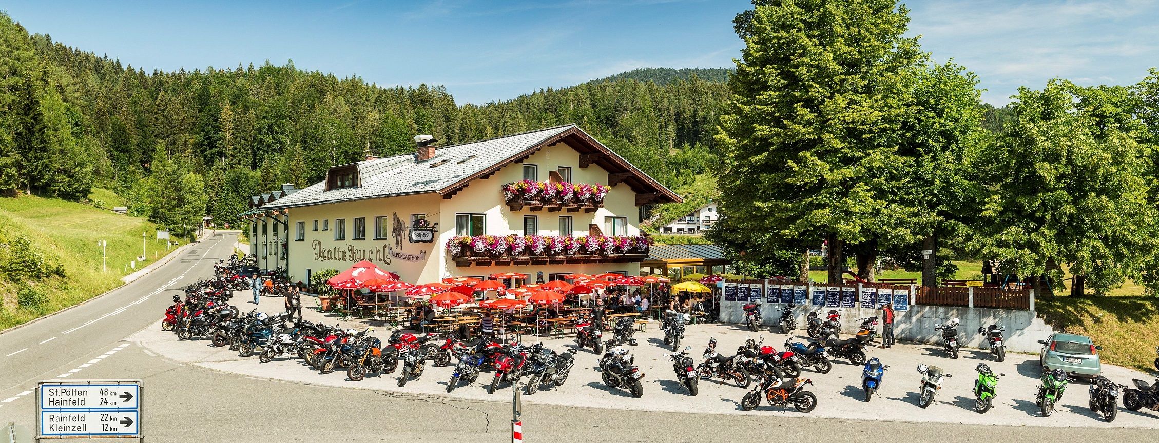 Der Alpengasthof liegt mitten im Grünen bei Rohr im Gebirge. Seit dem 11. Jahrhundert gibt es an dieser Stelle eine Raststätte. Früher wurden durchziehende Holzknechte und Handelsleute bewirtet, heute bewirtschaftet Familie Rieder den Gasthof bereits in der vierten Generation. Seither wuchs das Anwesen kontinuierlich. Zur Wahl stehen eine große Gaststube und ein großer Gastgarten. Unbedingt versuchen sollte man den Riesentopfenstrudel.