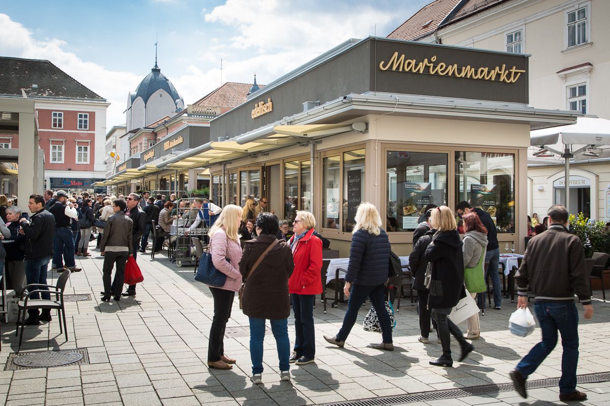 Der Marienmarkt auf dem Hauptplatz in Wiener Neustadt ist eine lebendige Markt‑ und Genusslocation im Zentrum der Stadt. Er lädt zu einer kulinarischen Entdeckungsreise ein und verbindet traditionelle Markttradition mit modernen Angeboten direkt am historischen Hauptplatz. Am Marienmarkt überraschen vielfältige Stände mit regionalen Schmankerln, gesunden Snacks, frischem Obst und Gemüse, hochwertigen Weinen sowie Blumen und Pflanzen – ideal für den täglichen Einkauf oder zum Genießen vor Ort. Der Markt bietet Raum zum Flanieren, Einkaufen und Verweilen: Besucherinnen können sich mit Freundinnen auf einen Kaffee oder ein Essen treffen und das besondere Flair zwischen Mariensäule und Altem Rathaus erleben. Ein Besuch am Marienmarkt bietet Genuss für alle Sinne und ist ein beliebter Treffpunkt im Herzen von Wiener Neustadt.