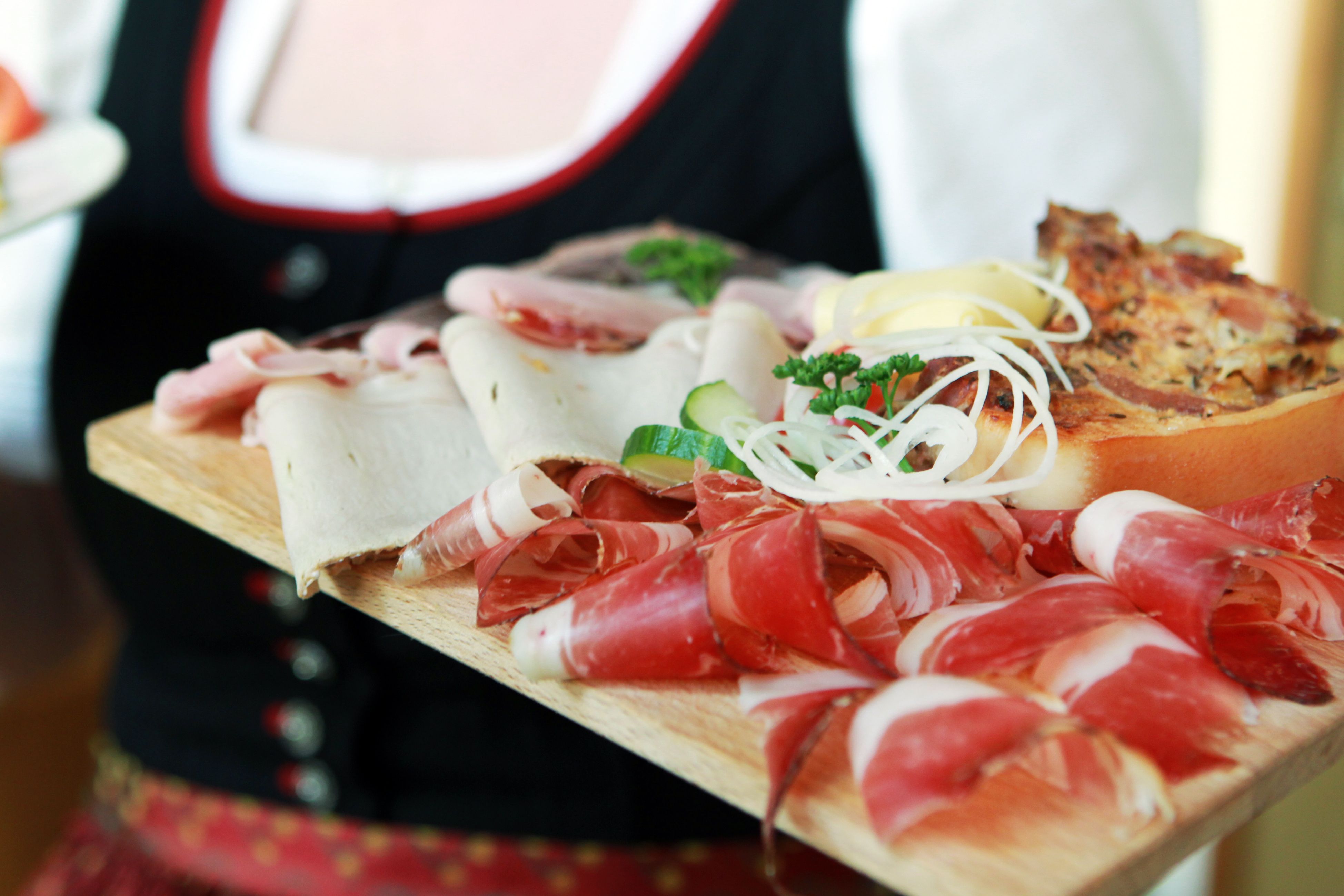 Aufgetischt wird ein reichhaltiges Jausenangebot mit selbstgemachten Fleischspezialitäten aus eigenem Mastbetrieb.
